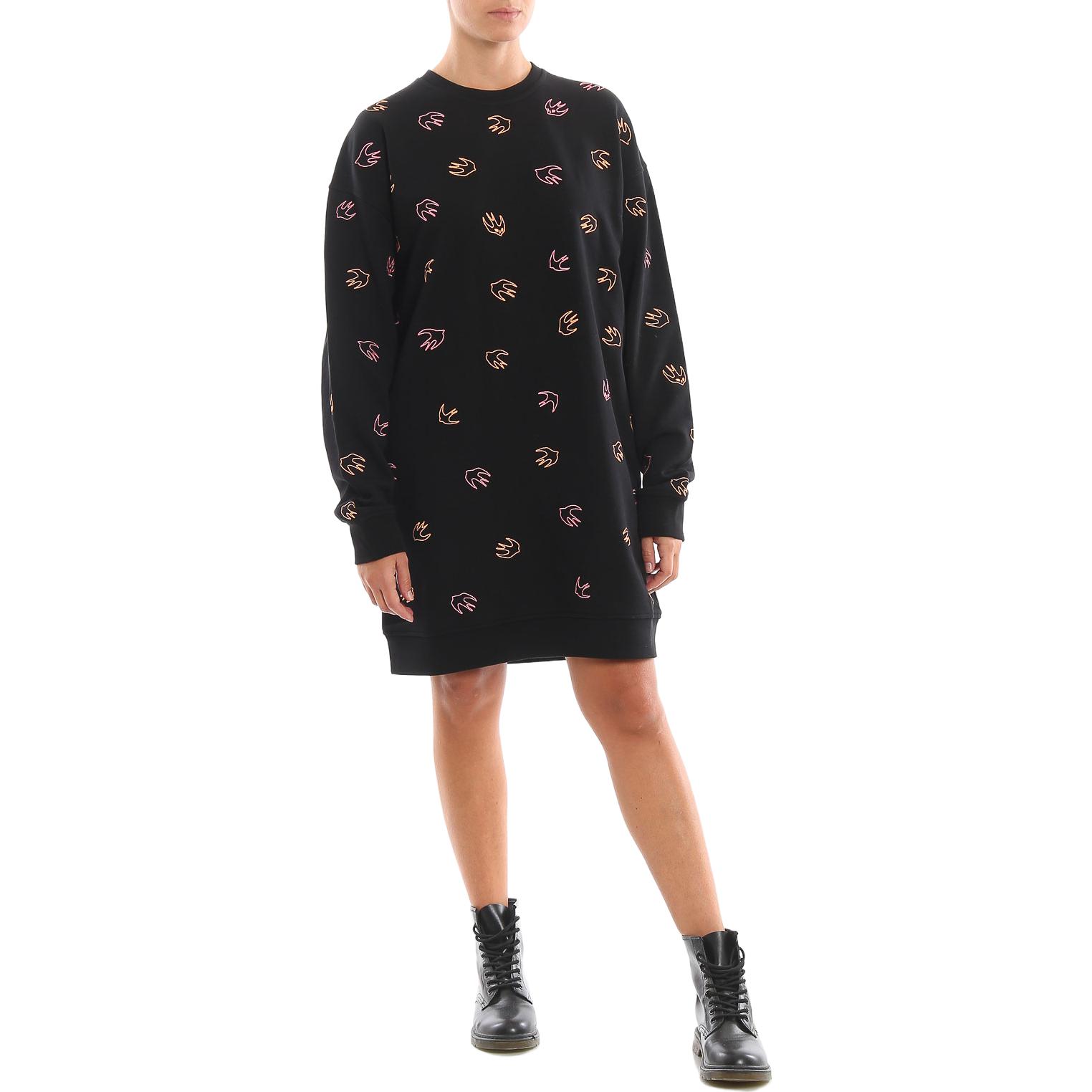 Женское черное платье с длинными рукавами McQ Alexander McQueen