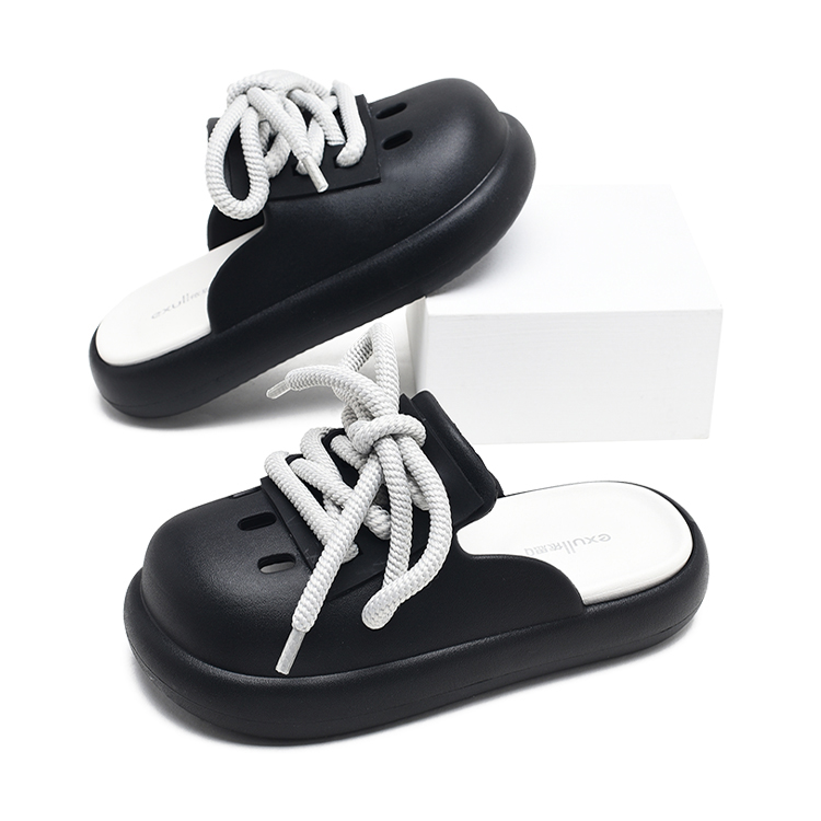 Тапочки с закрытым носком Унисекс Черный Белый EXULL Q