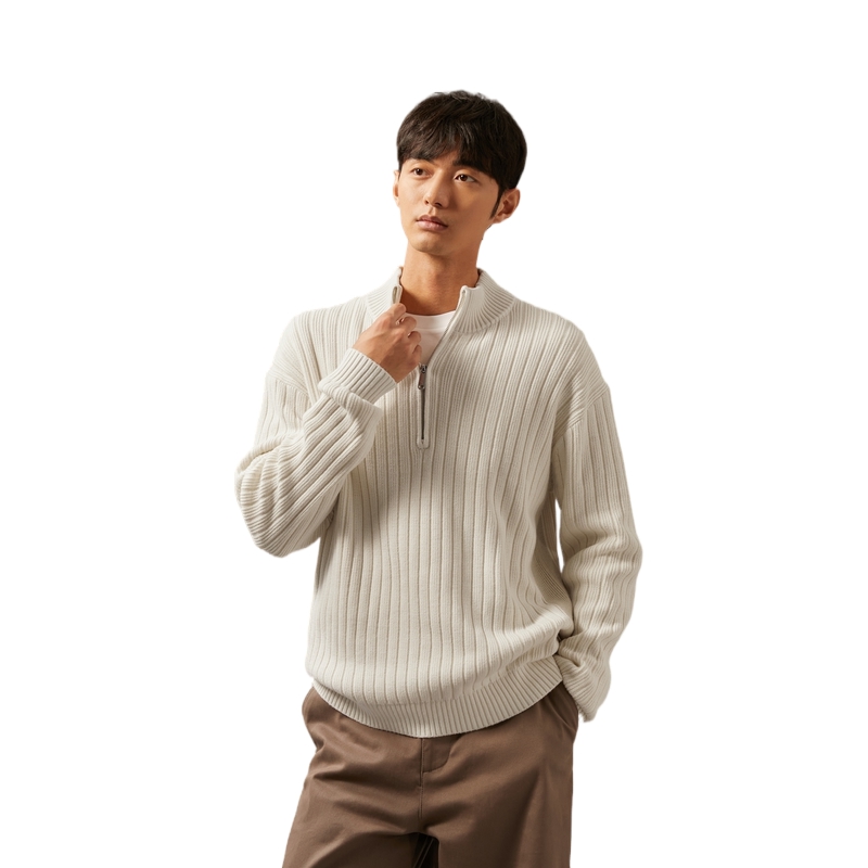 CALVIN KLEIN Вязаный свитер мужской коровьей расцветки слоновая кость, YBI-Ivory