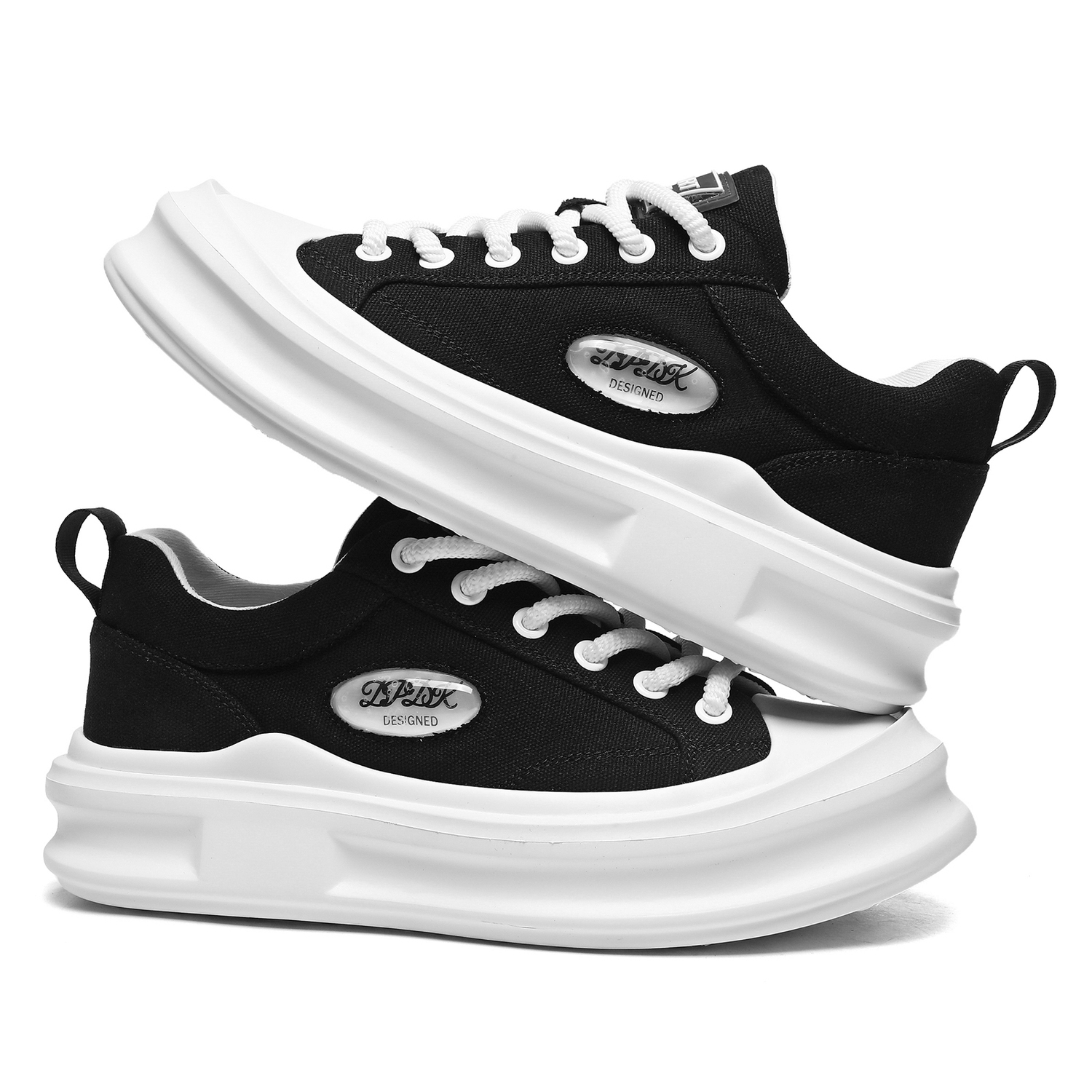 Скользоустойчивые легкие увеличивающие рост низкие кеды мужские черно-белые OSHRT
