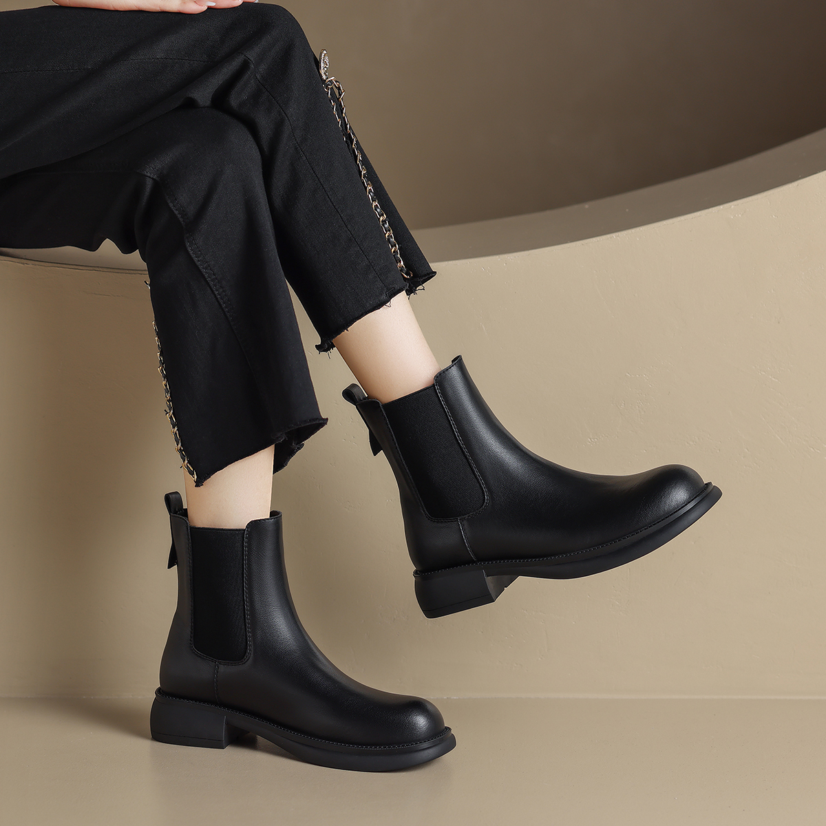 Женские полусапоги Chelsea Crew 4 см ZHR, черные без подкладки