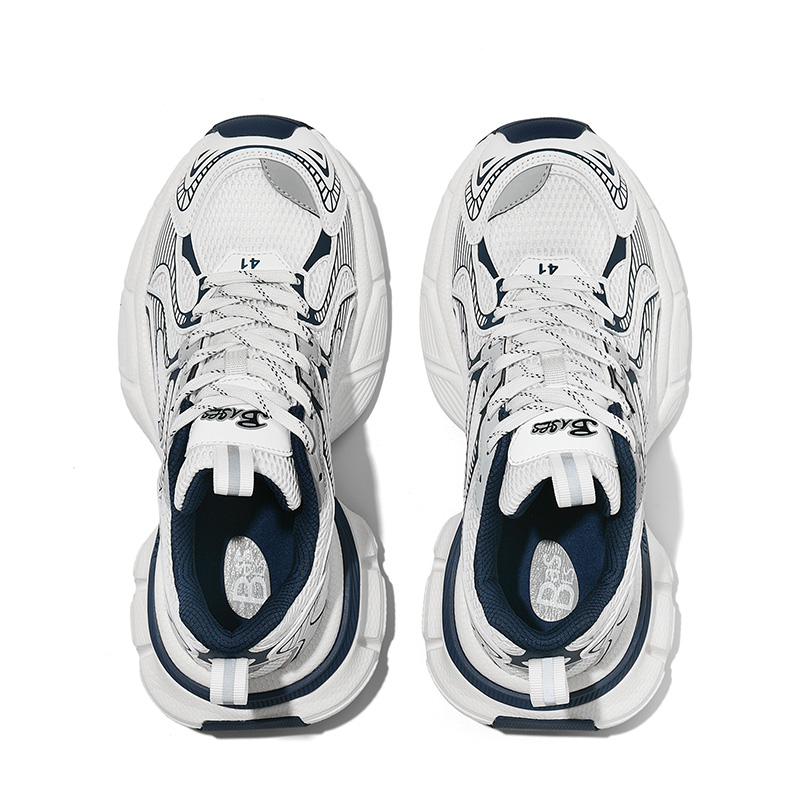 Массивные кроссовки унисекс низкие бело-сине-черные BASLS, потертые бело-голубые
