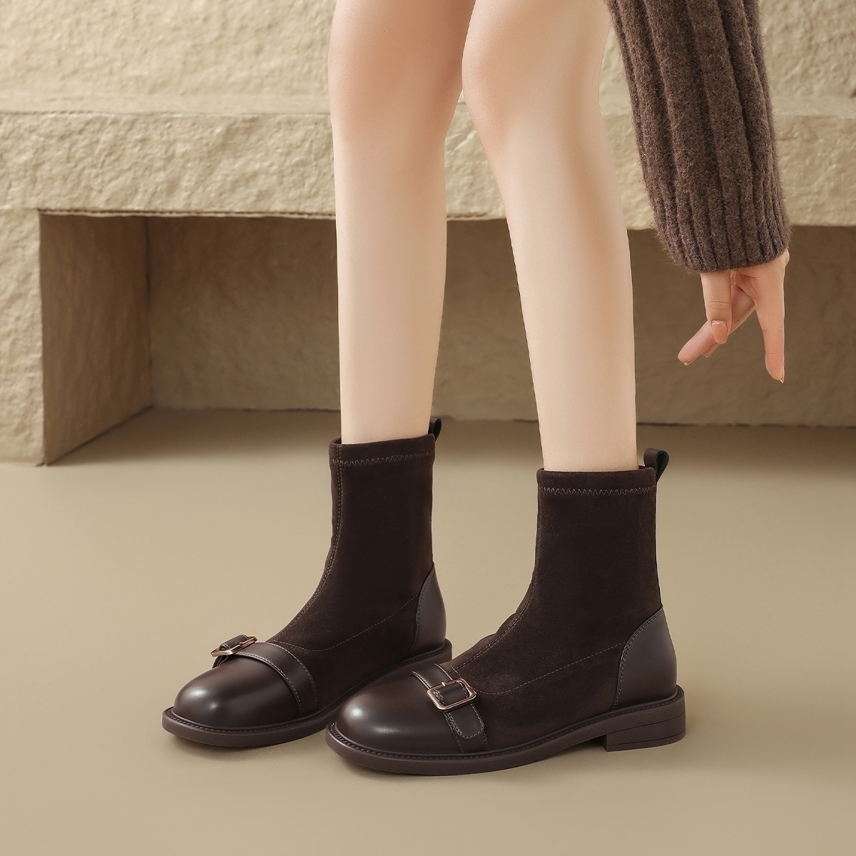Женские Ботинки Челси Черный/Коричневый ZHR, Коричневый [На Термофлисе]