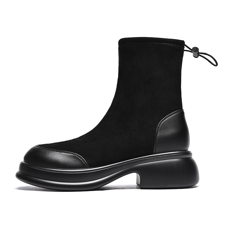Ботильоны женские черные ZHR на каблуке 5 см, черные [на флисовой подкладке]