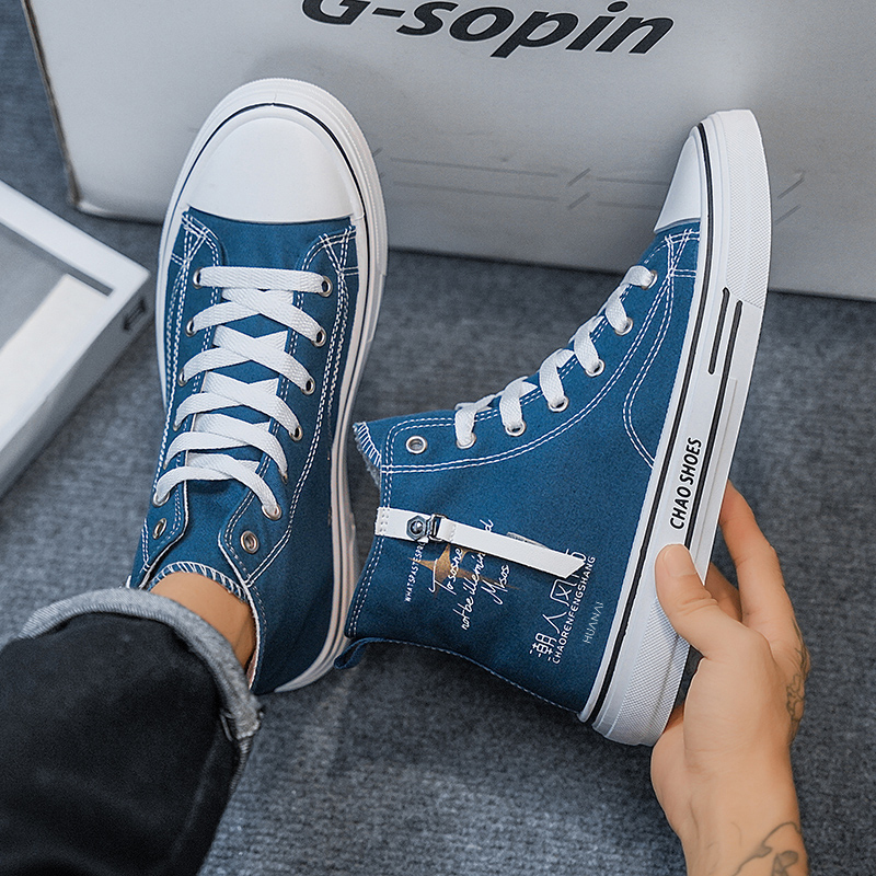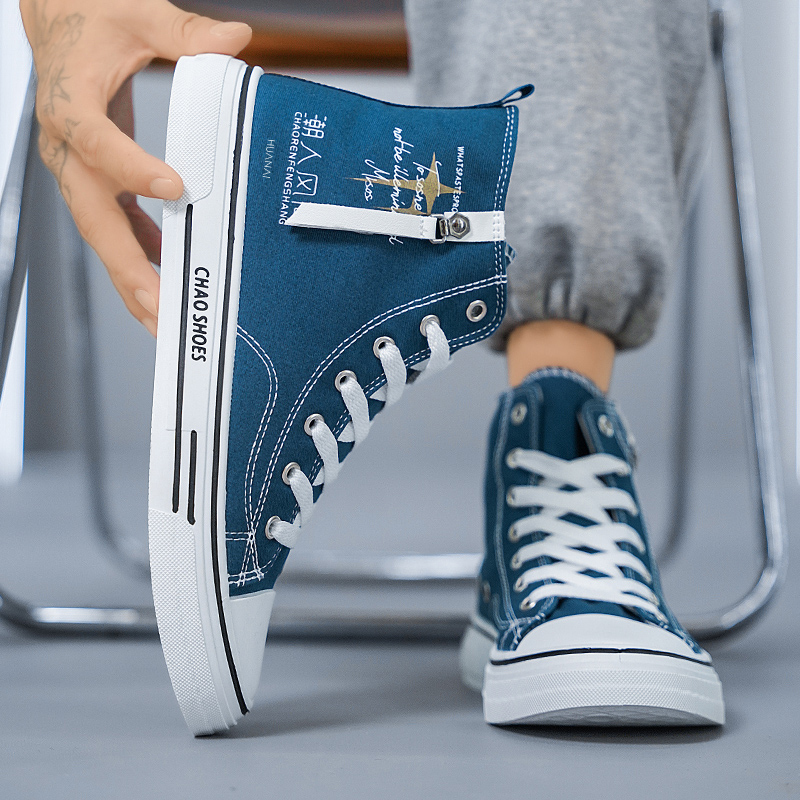Высокие кожаные кроссовки HUANAI для мужчин, синие