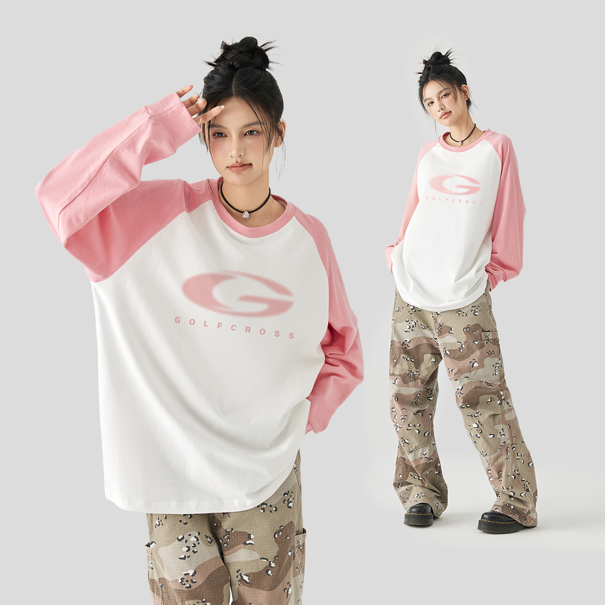 Футболка унисекс GOLFCROSS, белая и розовая