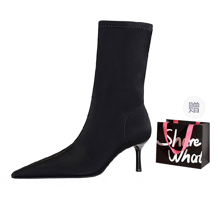 Ботильоны на каблуке 6 см женские черные BIGTREE, черные+Сумка для покупок