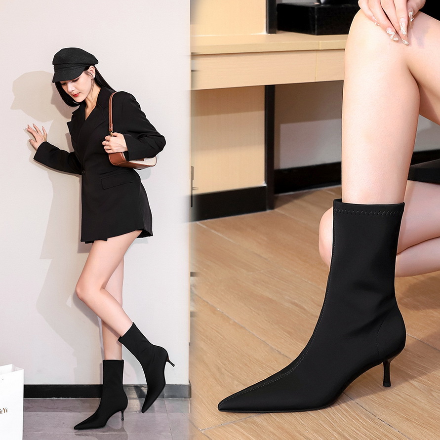 Ботильоны на каблуке 6 см женские черные BIGTREE, черные+Сумка для покупок 4 888₽