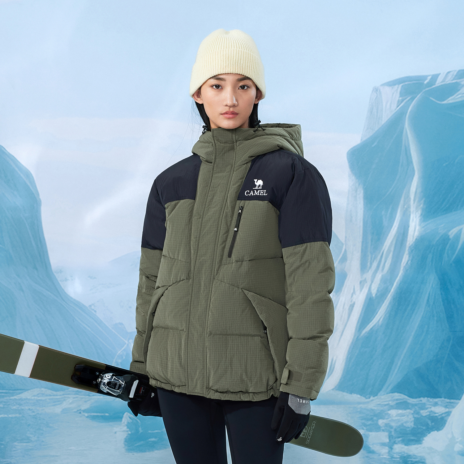 Теплая флисовая серия пуховик унисекс CAMEL, Темно-оливковый/Фантомный черный 8 624₽