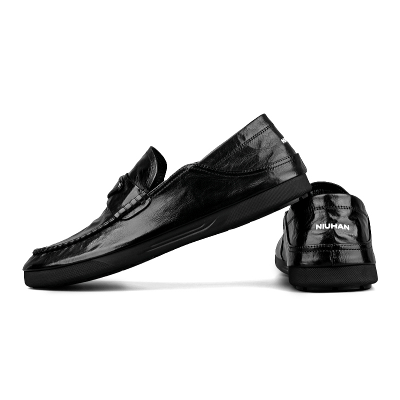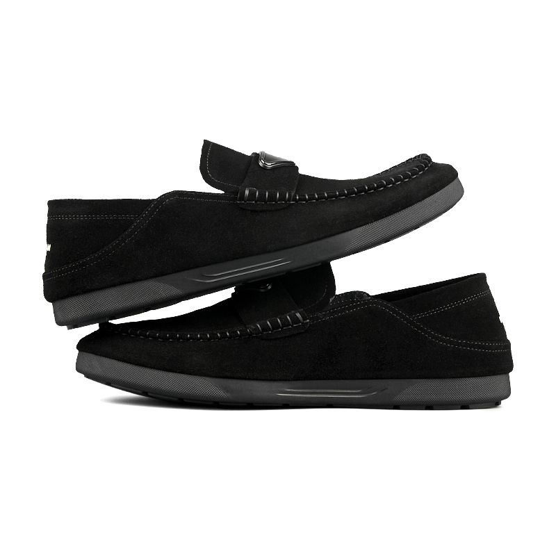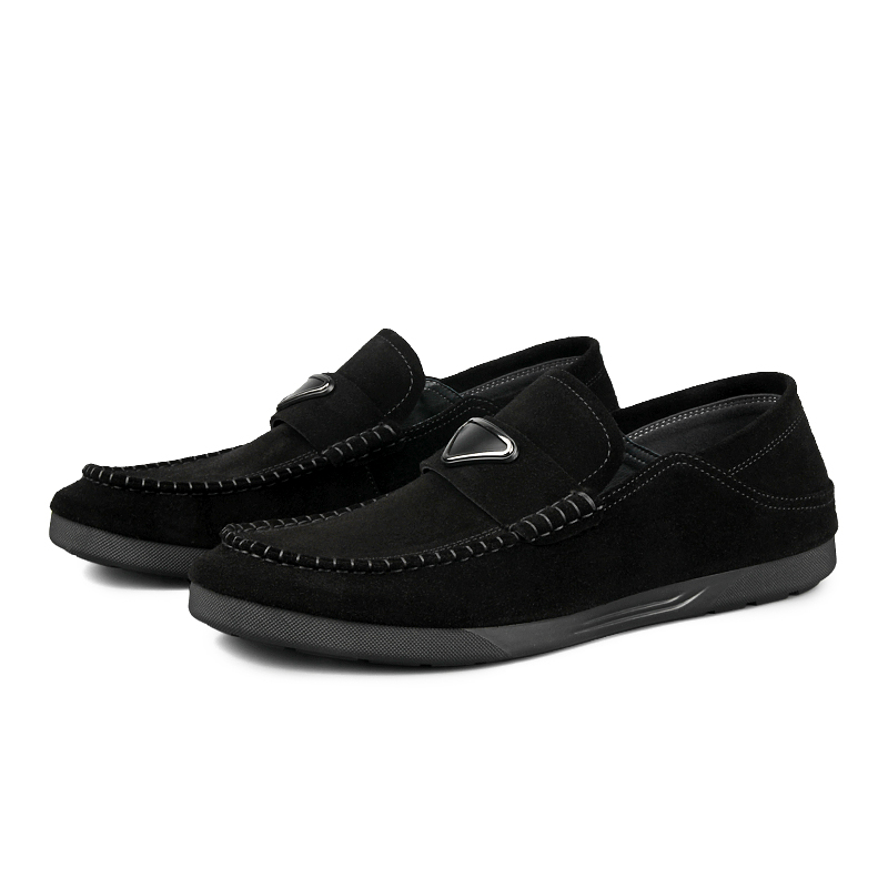 Мужские лоферы черные Новинка Корея, Черный (Нубак)
