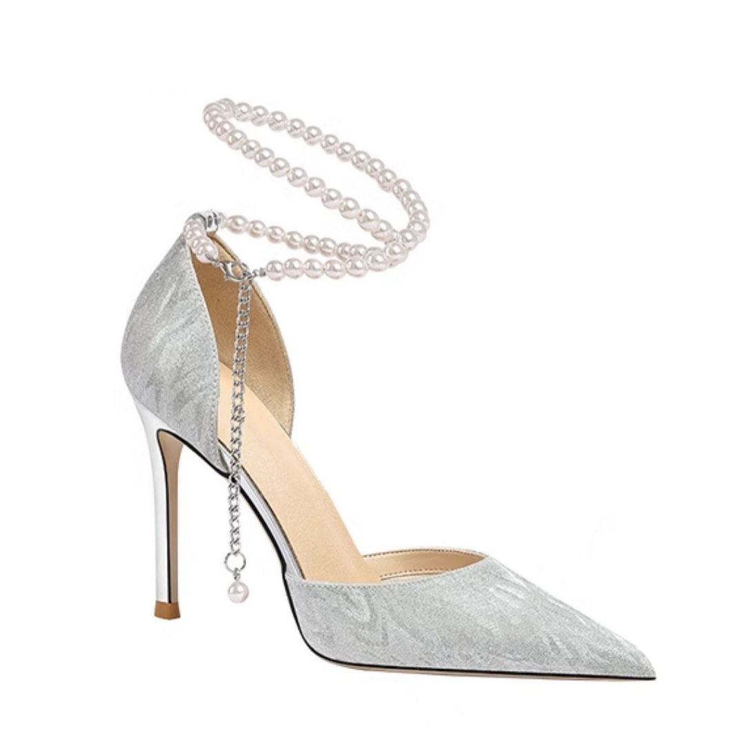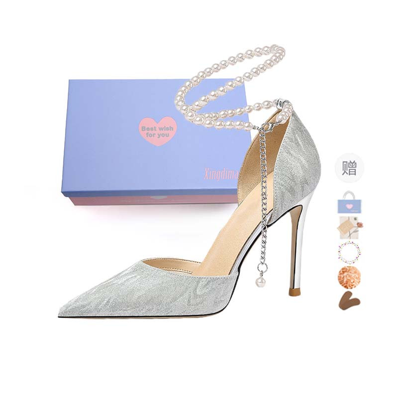 Туфли на высоком каблуке Xingdiman серебристые 8 см с подарочной упаковкой и подарком