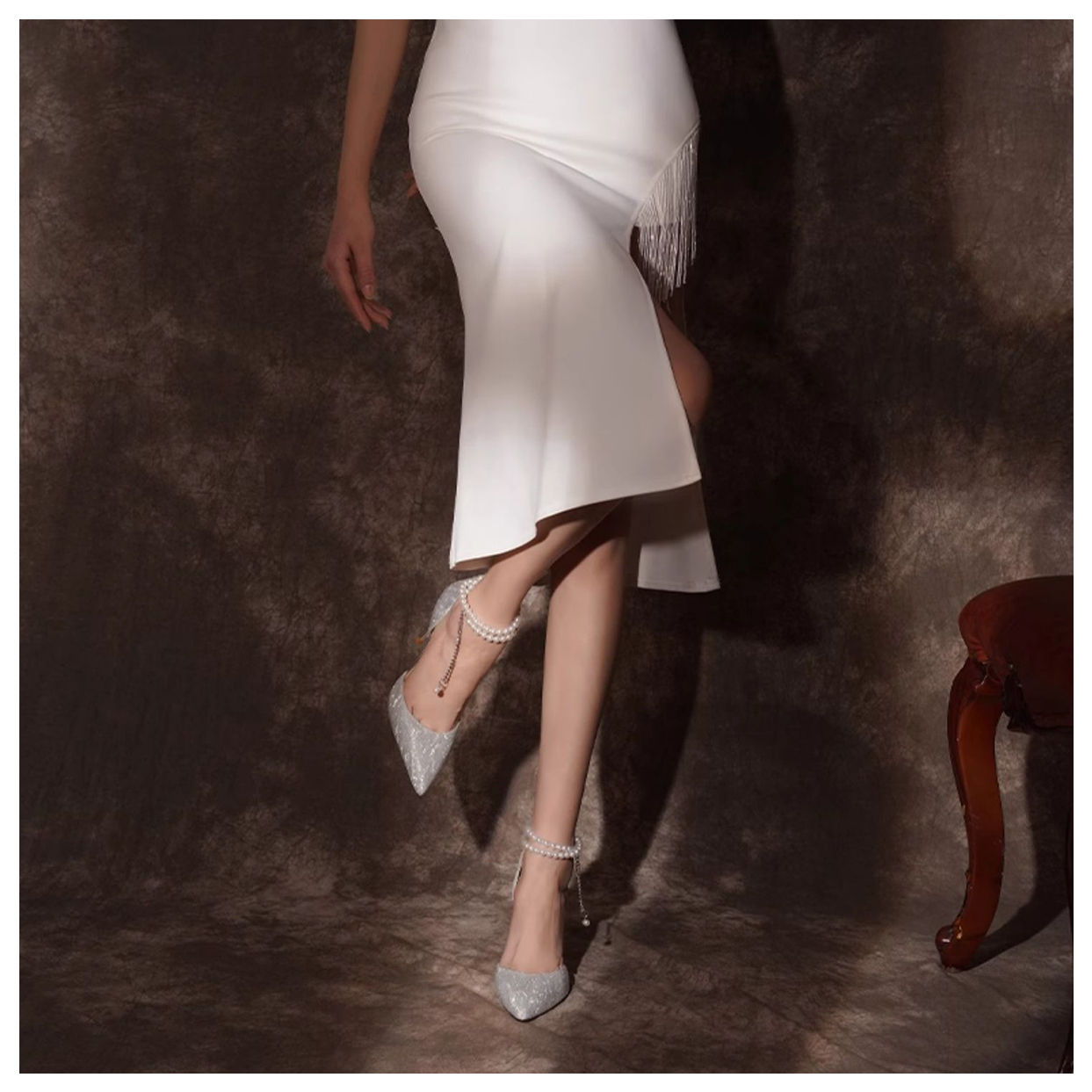 Туфли на высоком каблуке Xingdiman серебристые 8 см с подарочной упаковкой и подарком 2 487₽