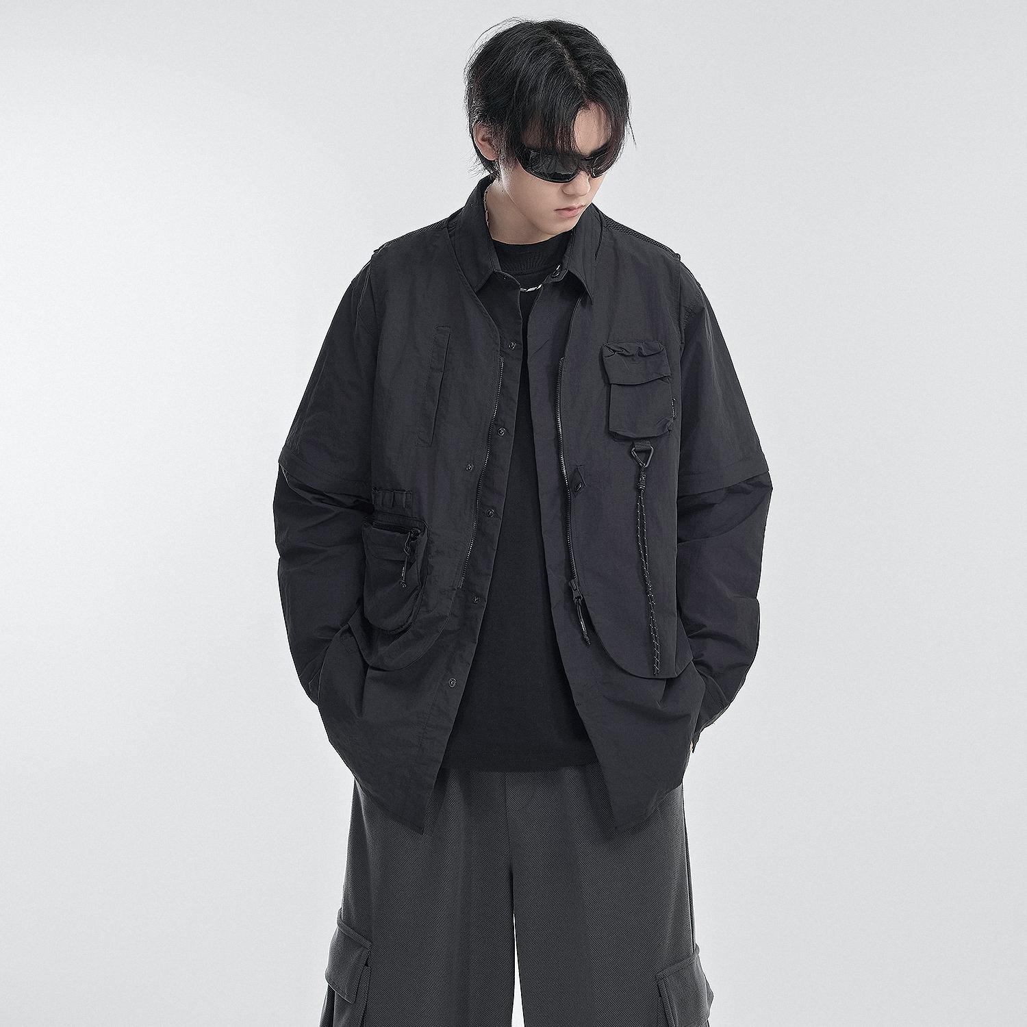 Съемные двухсекционные рукава, длинные рукава мгновенно превращаются в короткие, имитация двухсекционного соединения, альпинистская пряжка и украшение в виде шнурка
