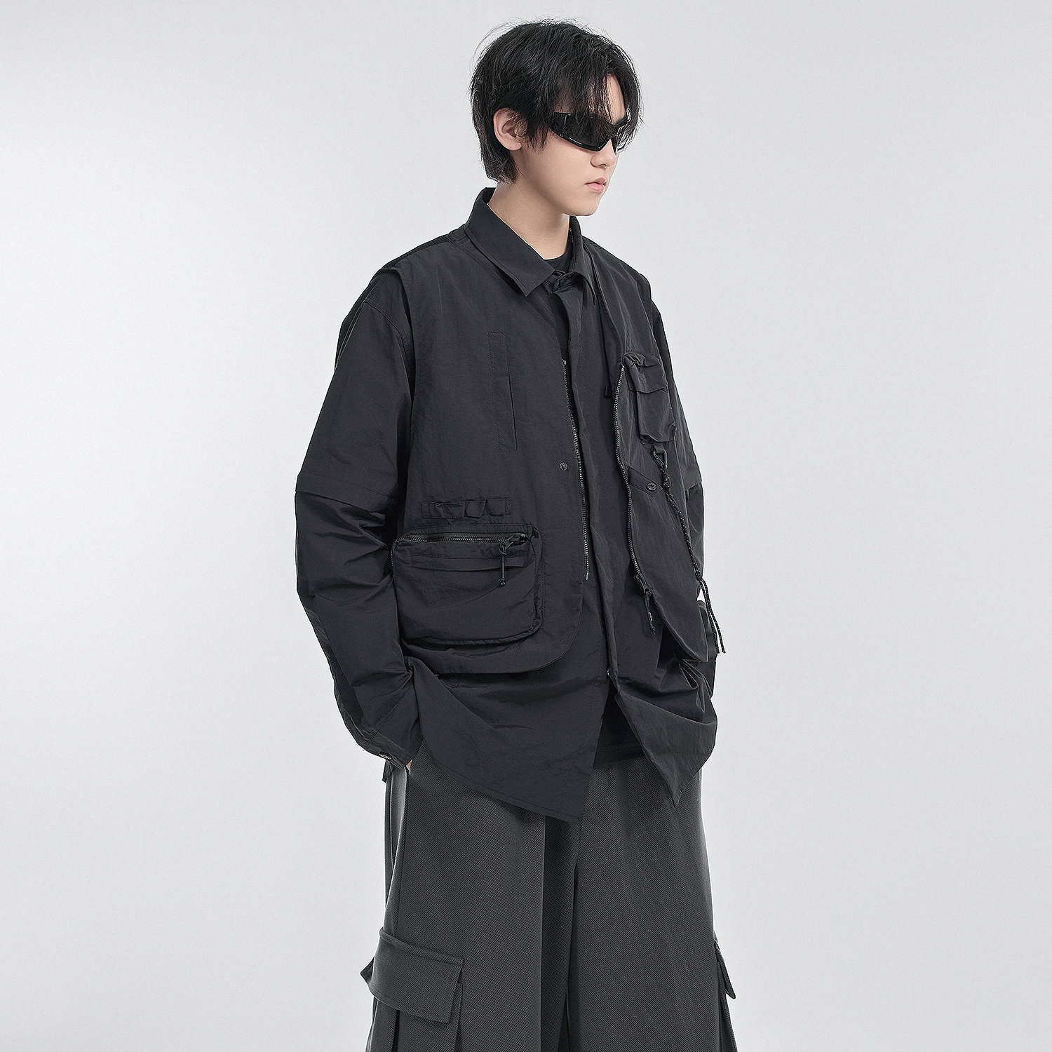 Съемные двухсекционные рукава, длинные рукава мгновенно превращаются в короткие, имитация двухсекционного соединения, альпинистская пряжка и украшение в виде шнурка