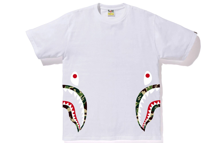 Футболка Bape Flame Side Shark A BATHING APE, бело-зеленый камуфляж