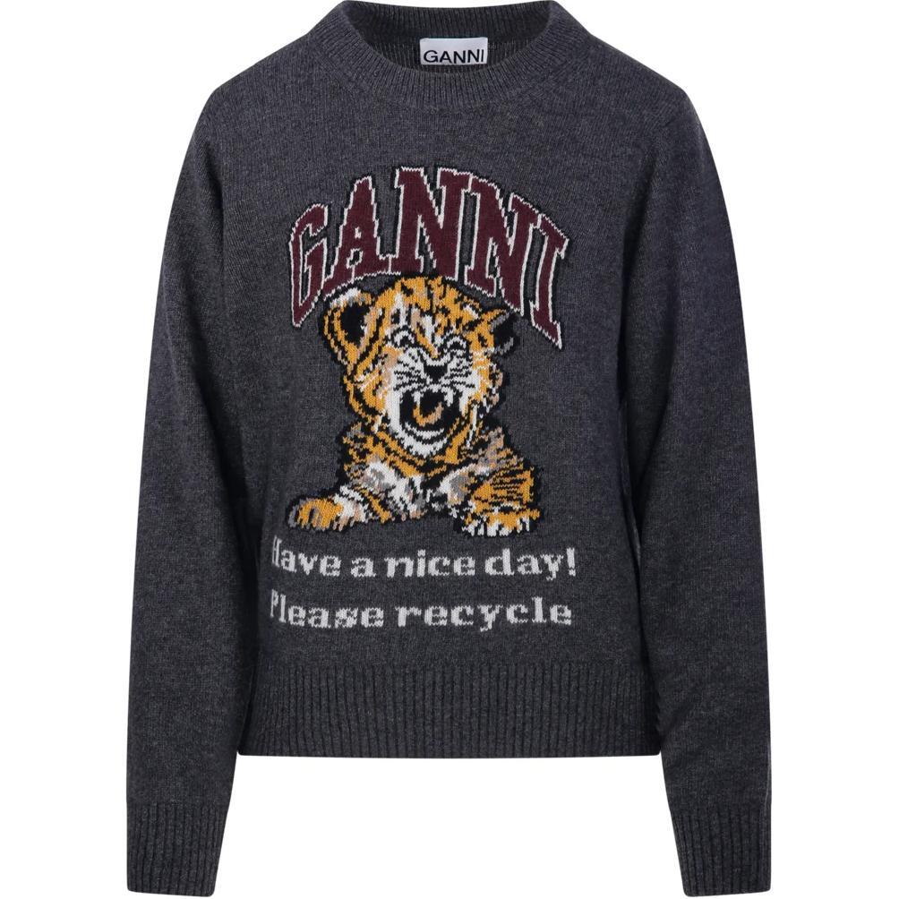 Графитовый свитер с тигром GANNI, серый 20 645₽