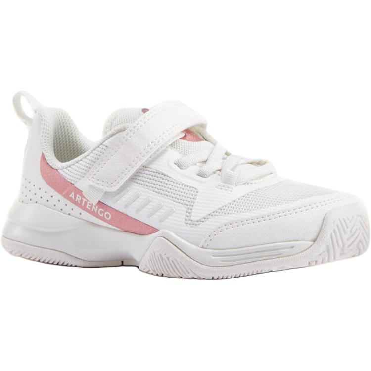 Антискользящие низкие детские кроссовки для тренировок бело-розовые Kids' DECATHLON, чистый белый (липучка)