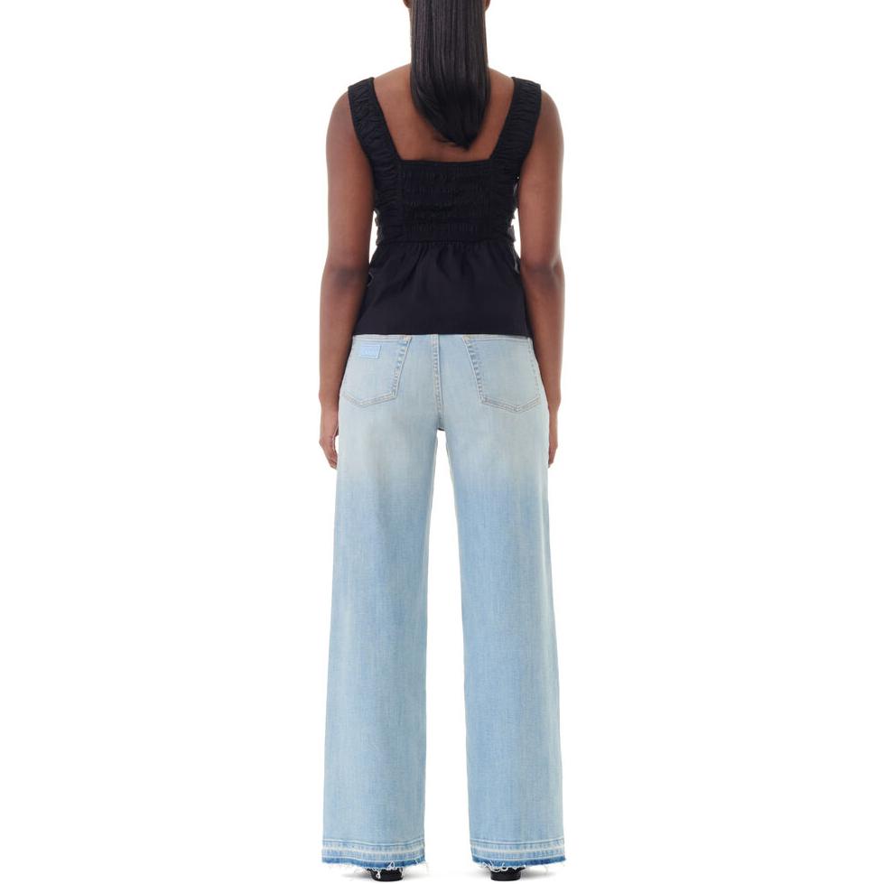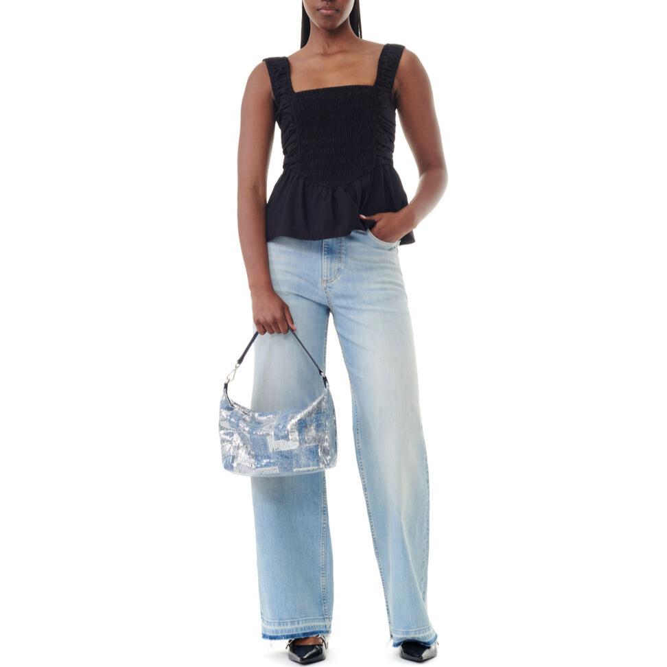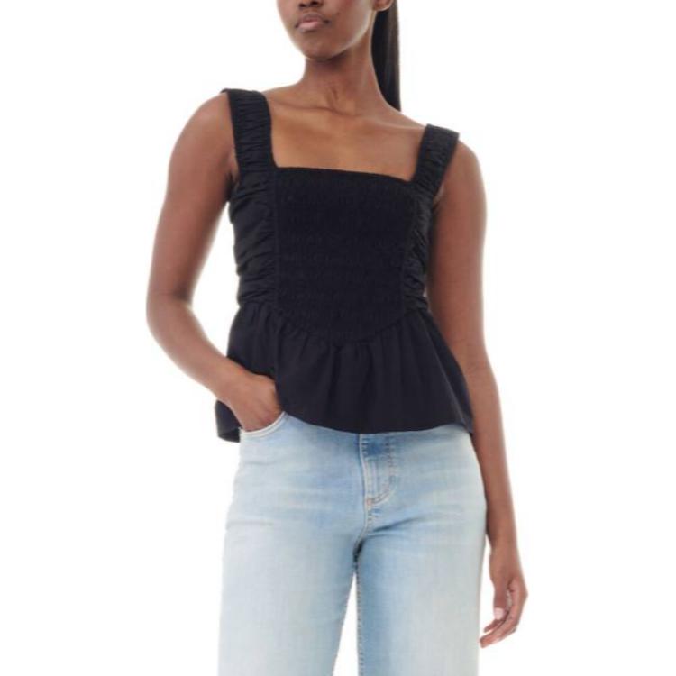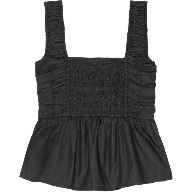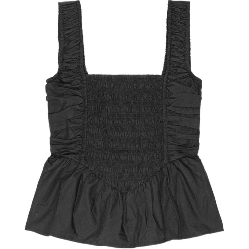 GANNI Поплиновая блузка на бретелях с буфами, черная