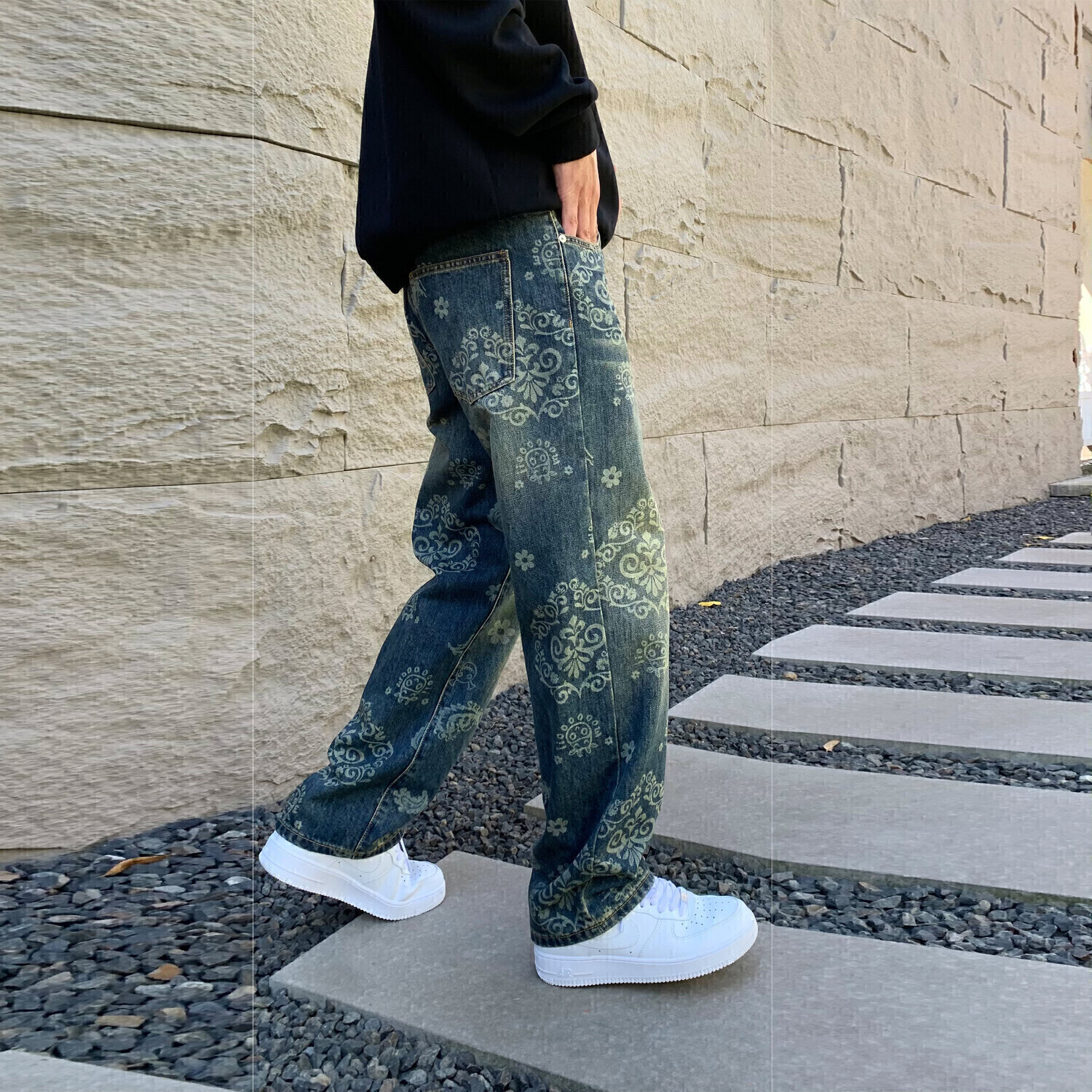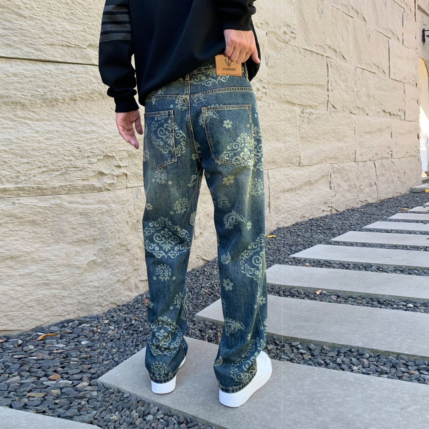 Джинсы Unisex Vintage Blue FUERZA, Винтажные синие улучшенные (9089)