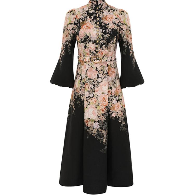 Иллюстрированное платье миди на пуговицах Zimmermann, черное 137 436₽
