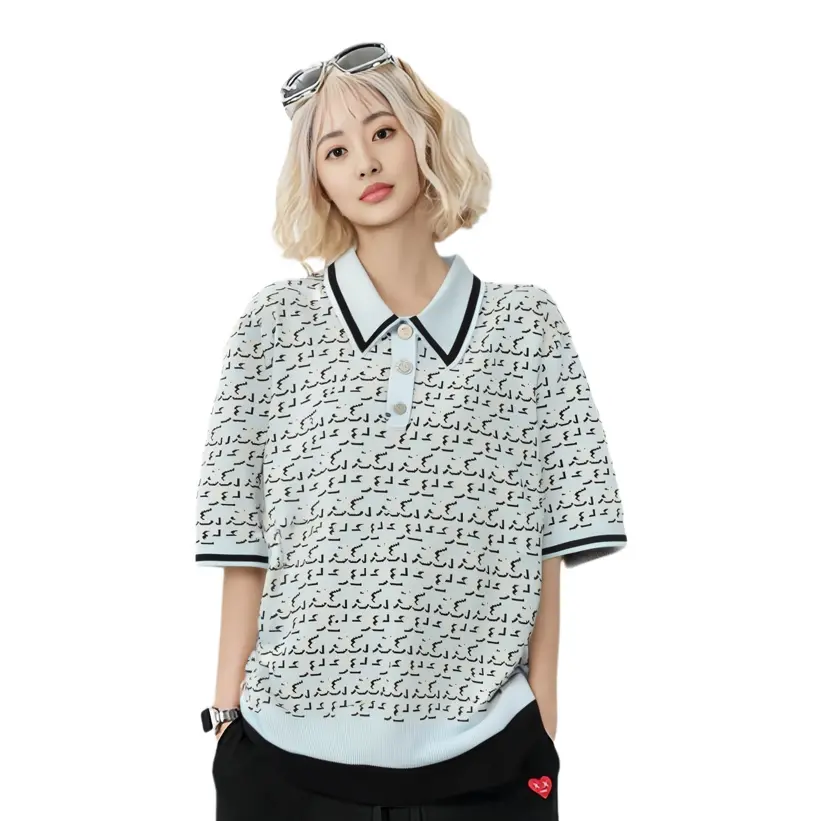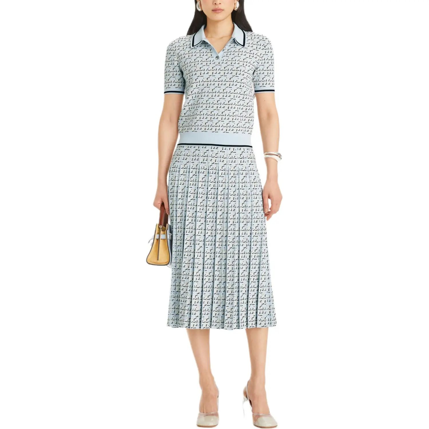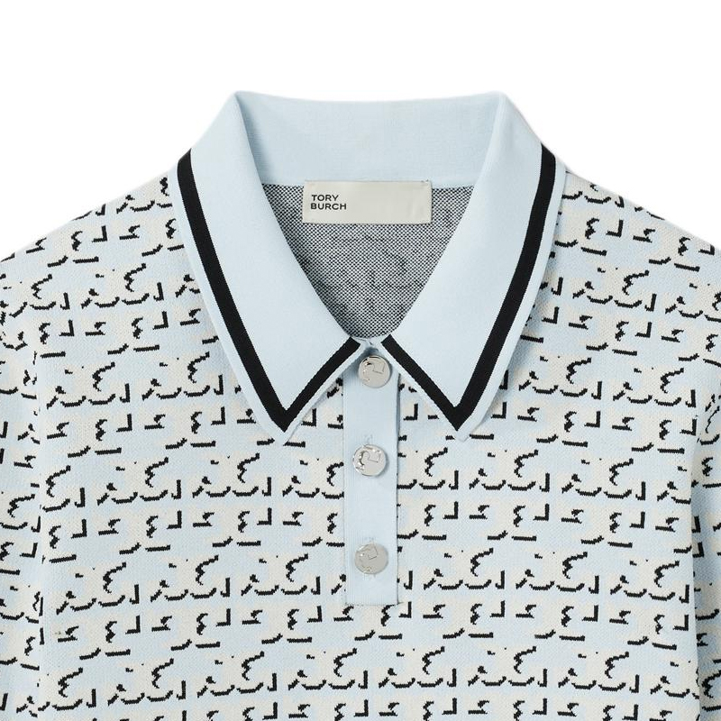 Монограммный жаккардовый поло топ TORY BURCH, синий 44 764₽