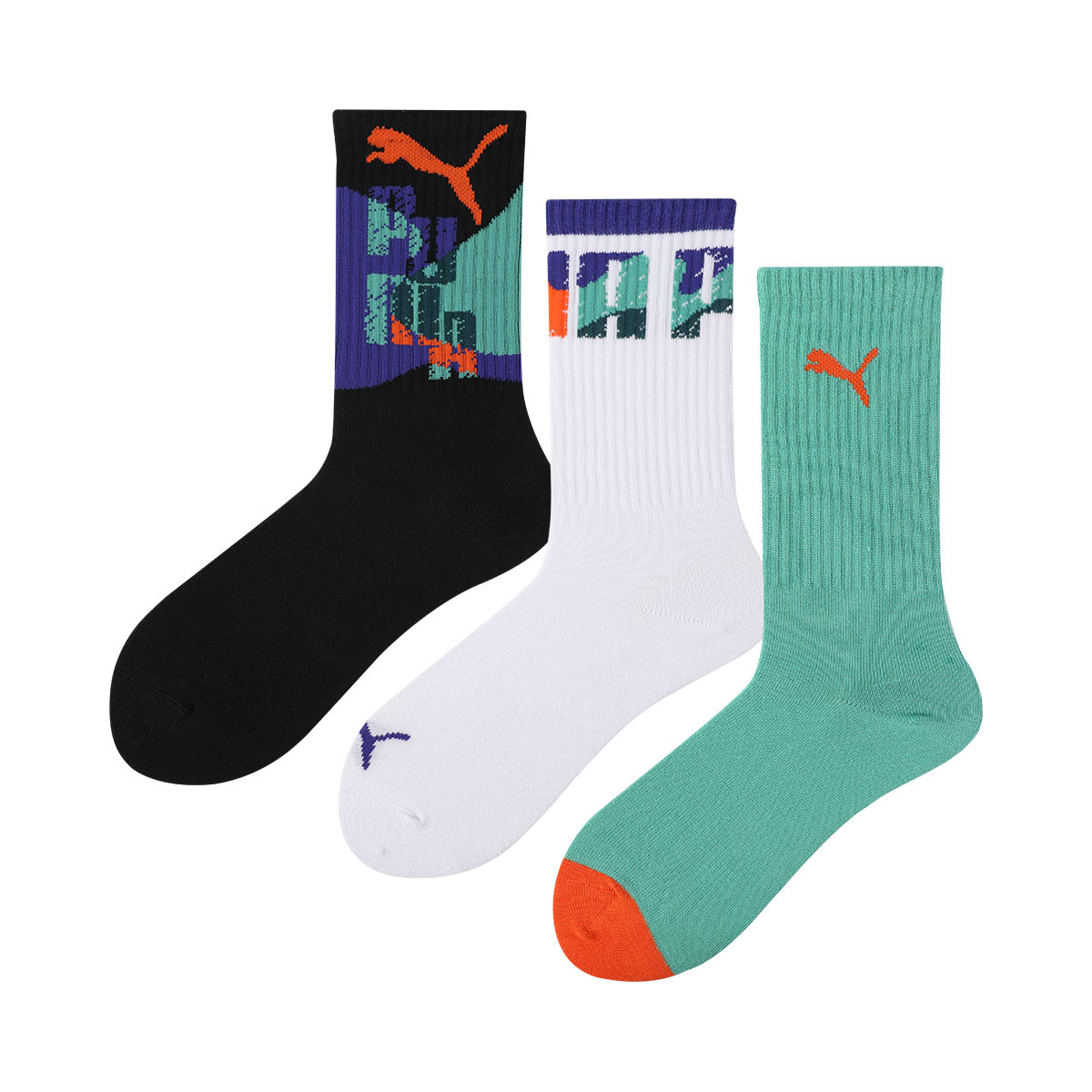 Детские носки PUMA, черный/зеленый/белый