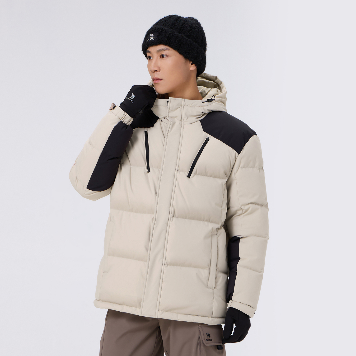 Теплая флисовая серия пуховик мужской CAMEL, светло-бежевый/фантомный черный