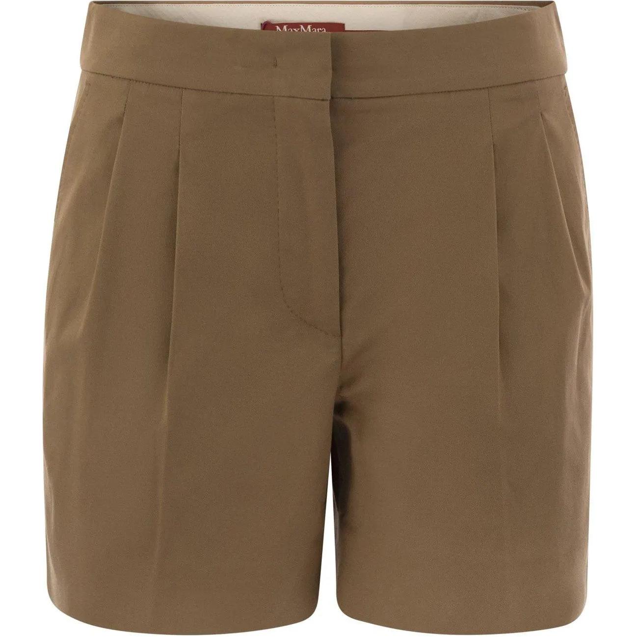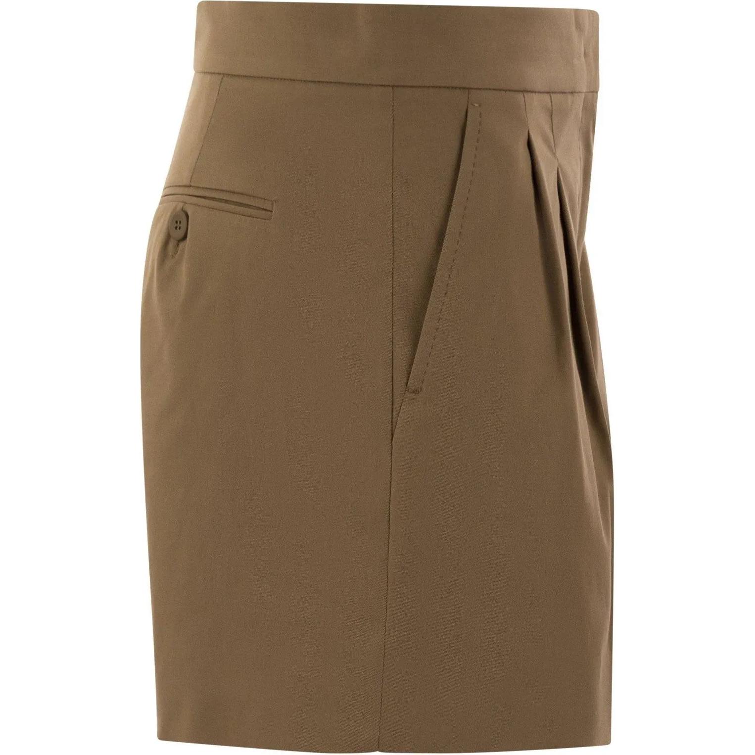 Макси Укороченные Шорты с Высокой Талией и Декоративными Пуговицами MaxMara Studio, Светлый Умбра