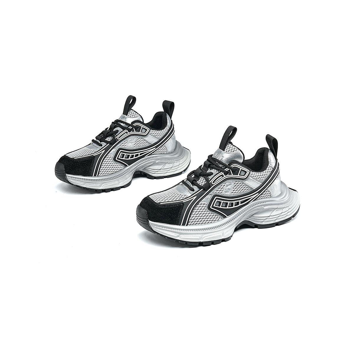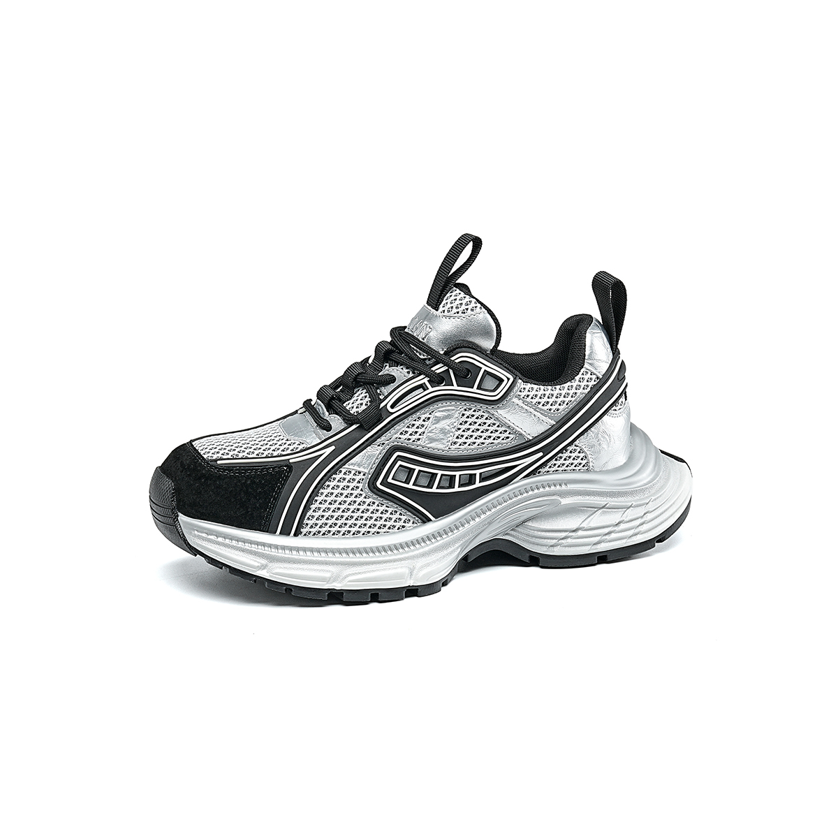 Массивные кроссовки женские черные серебристые EBLAN