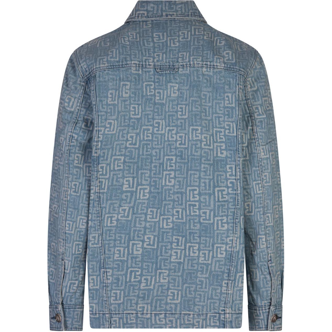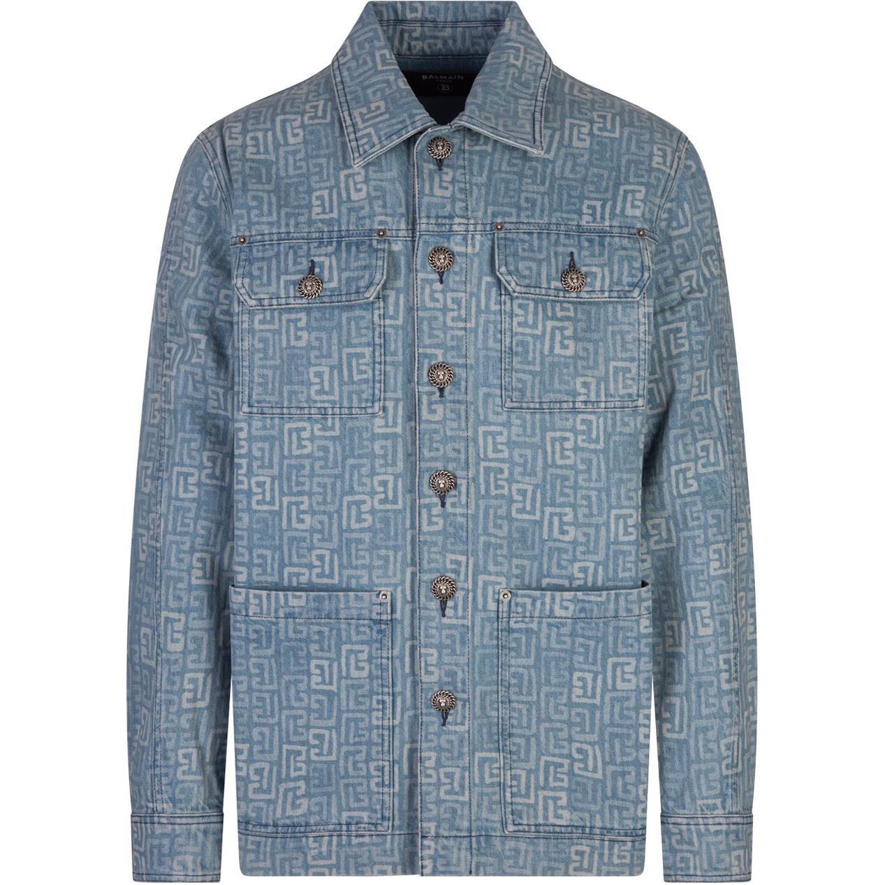 Джинсовая куртка с логотипом монограммы BALMAIN, синяя