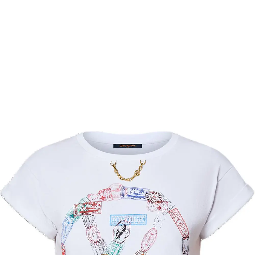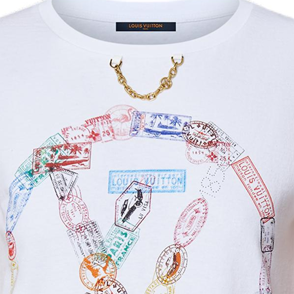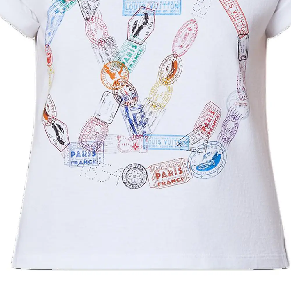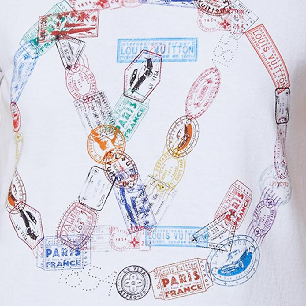 Футболка Louis Vuitton с принтом в виде штампов и круглого логотипа, белая