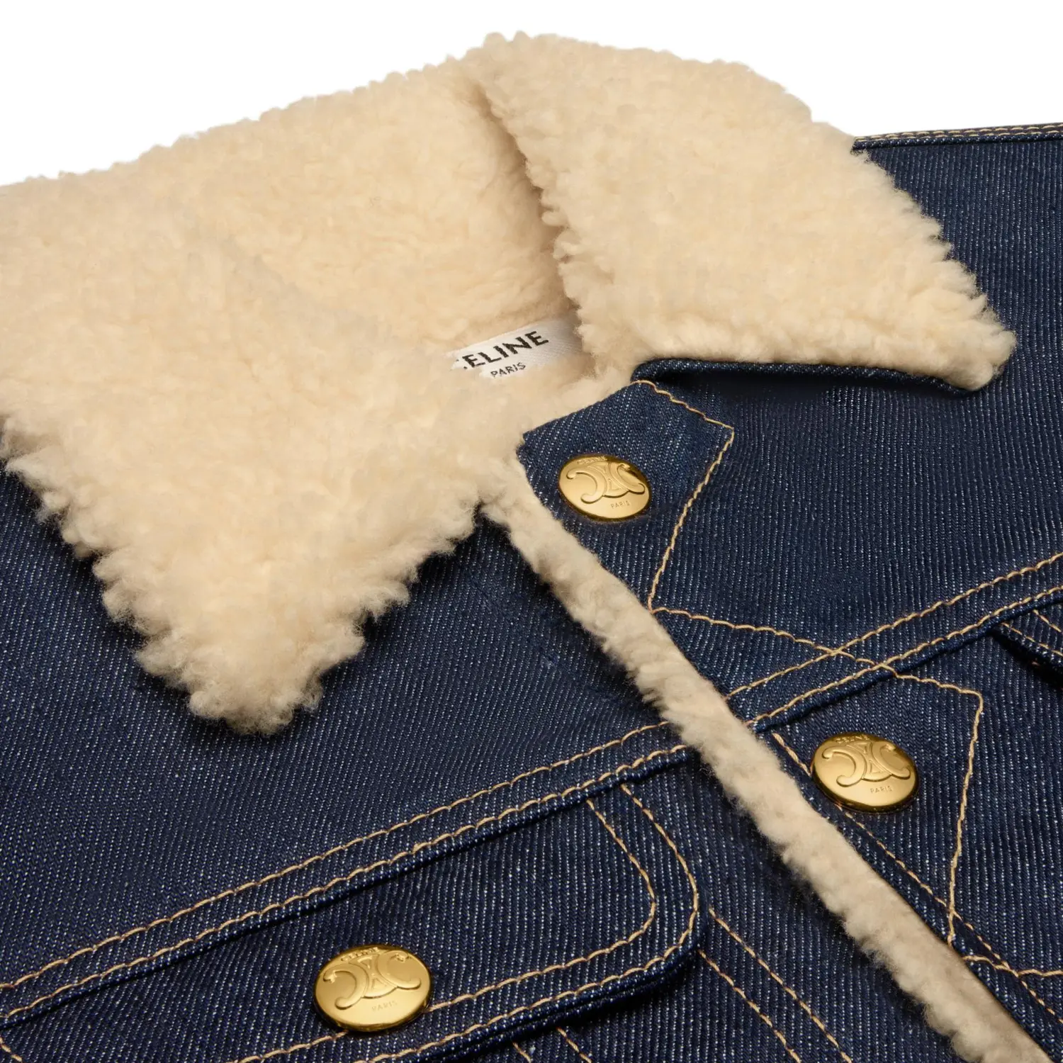Куртка-рубашка дальнобойщика из шерпы CELINE, потертый темно-синий 213 779₽