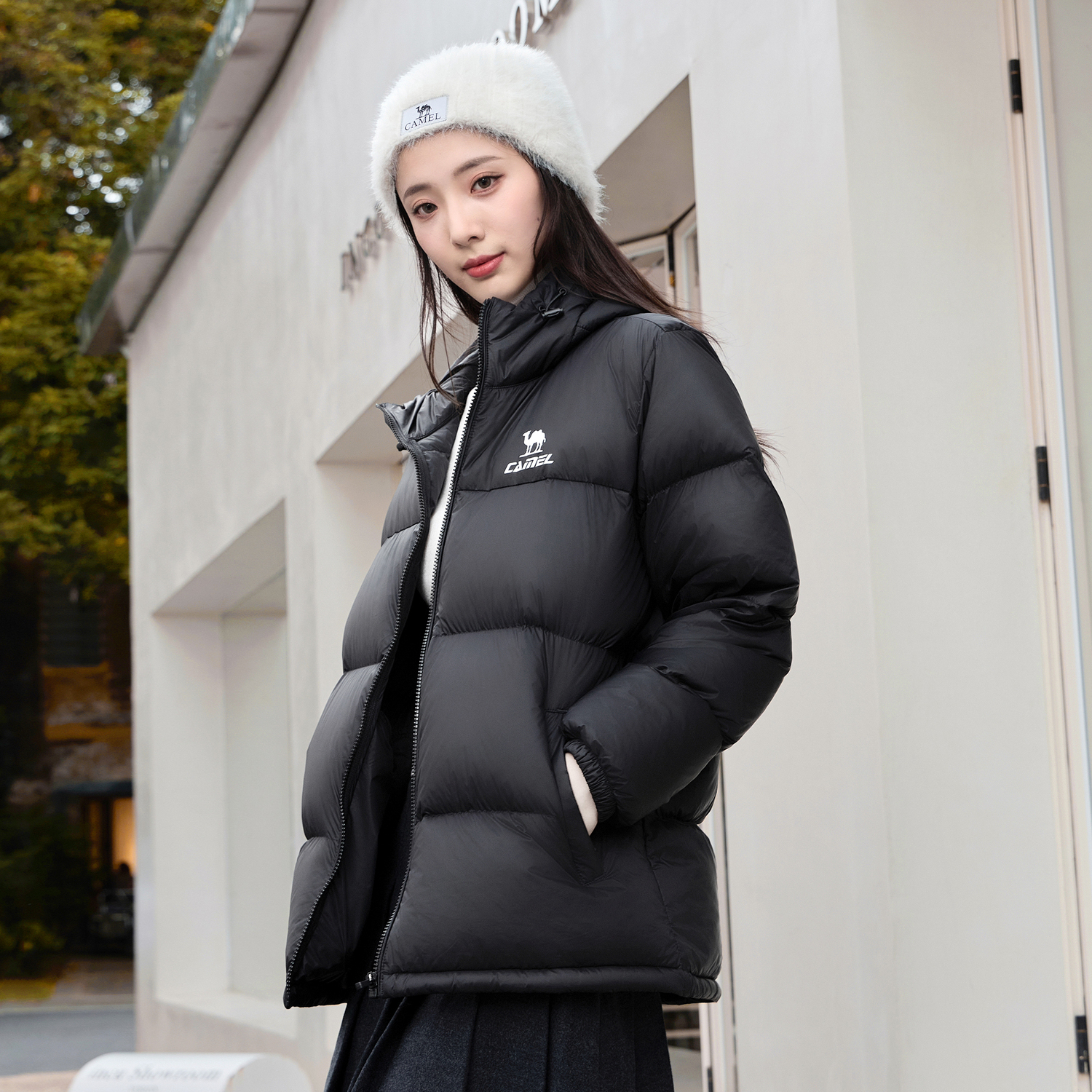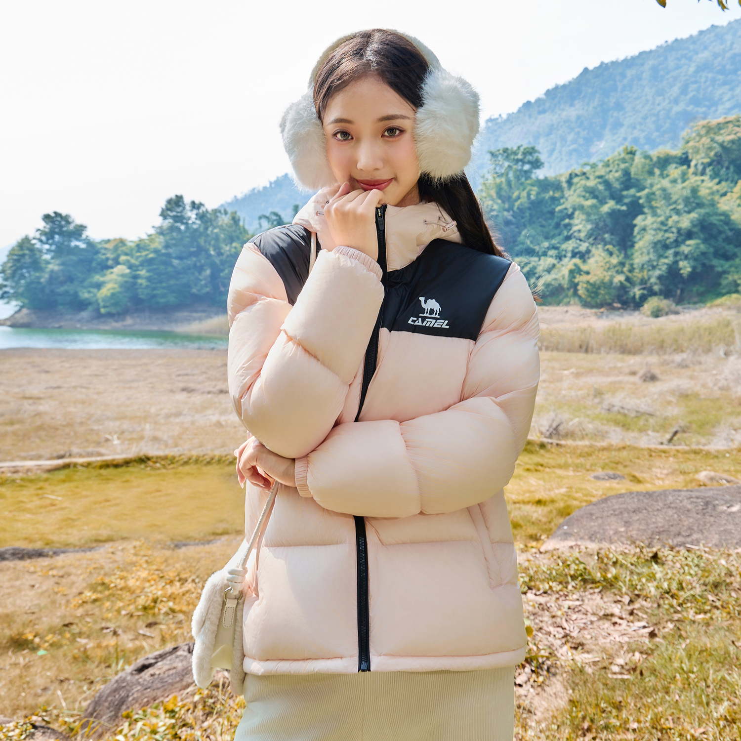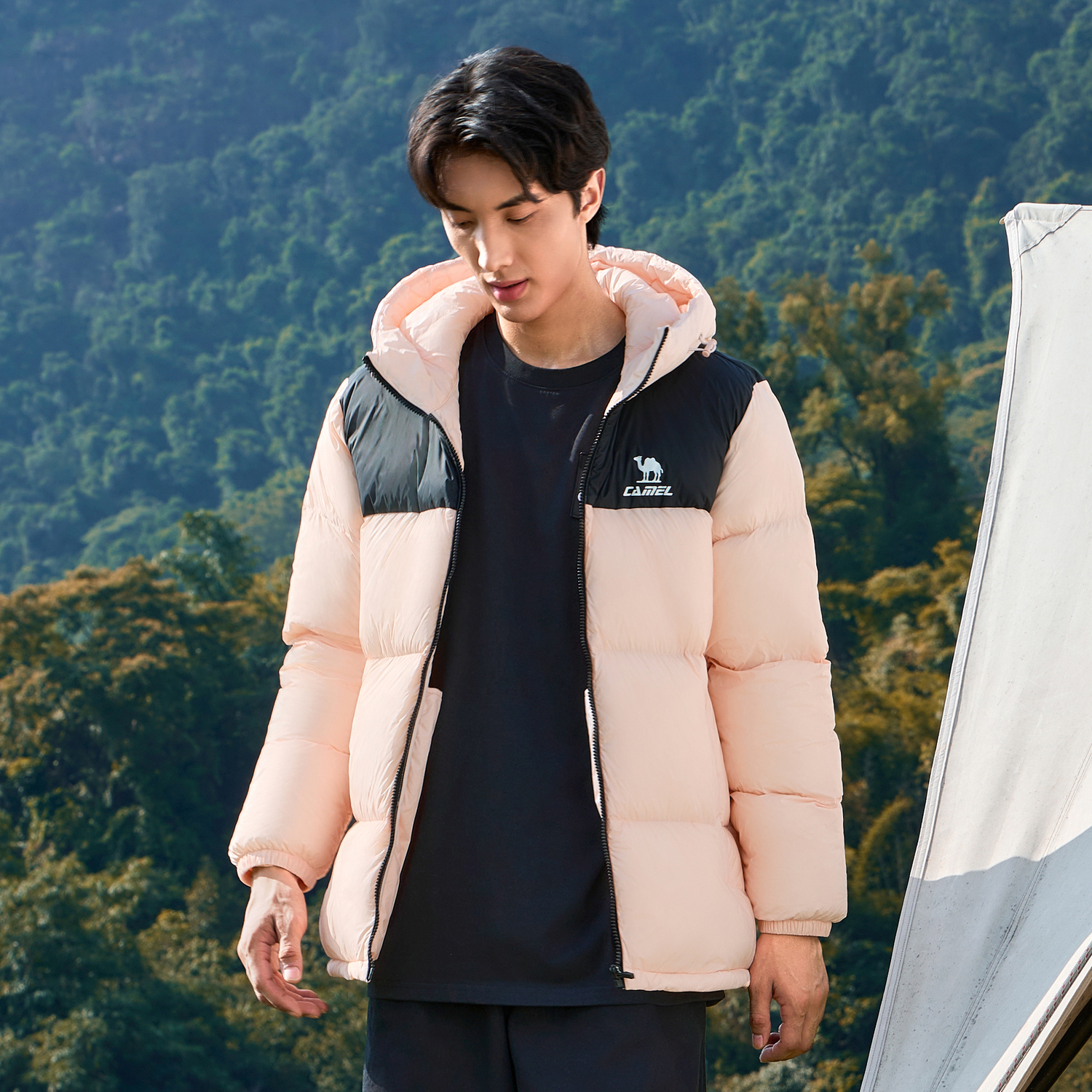 Теплая флисовая серия пуховик унисекс CAMEL, Фейерверк Розовый/Фантом Черный