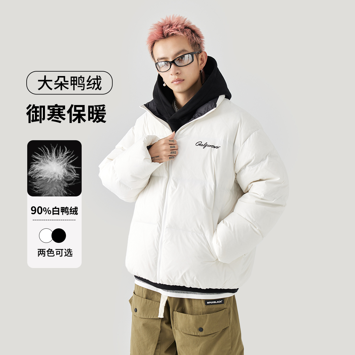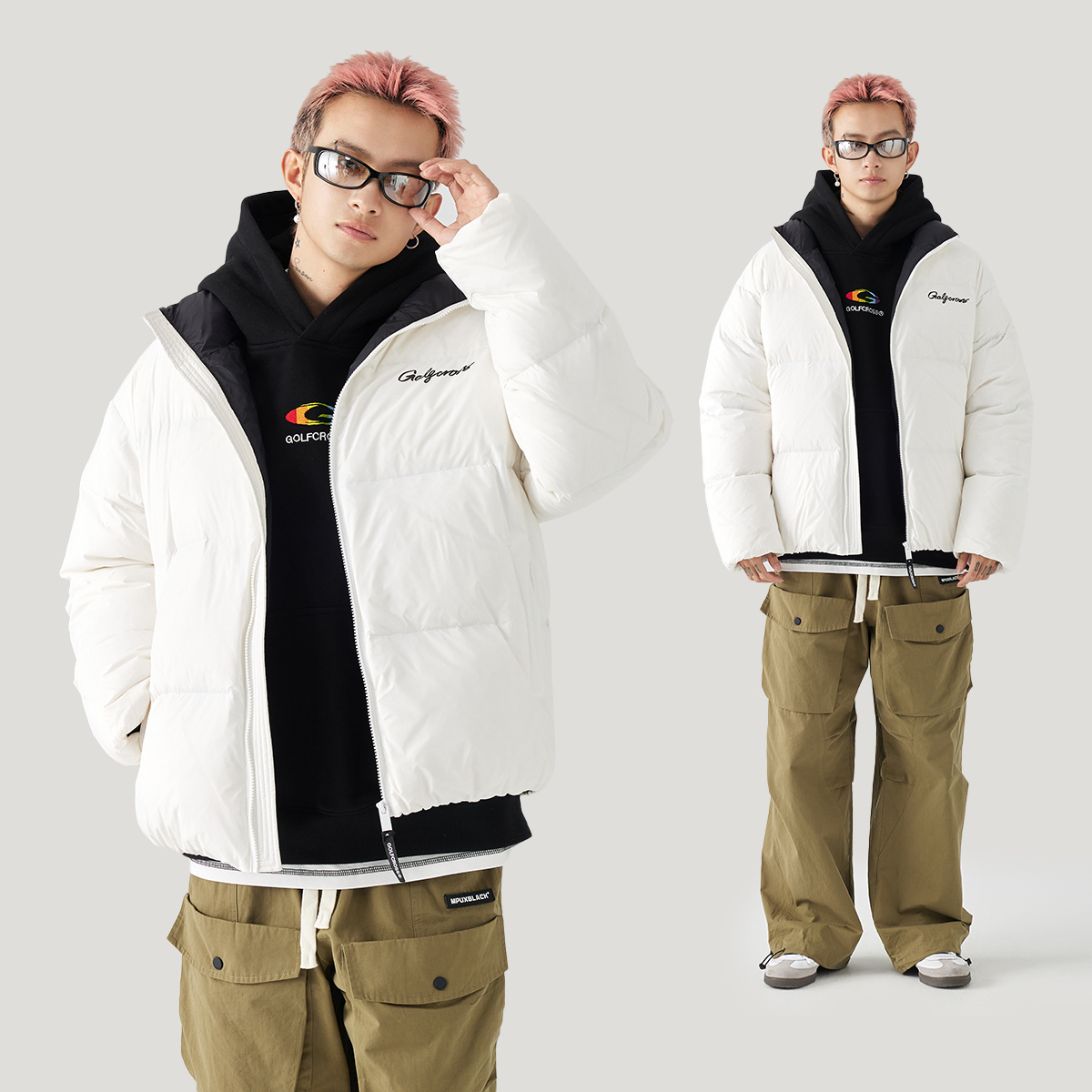 Пуховик Unisex GOLFCROSS, бело-черный