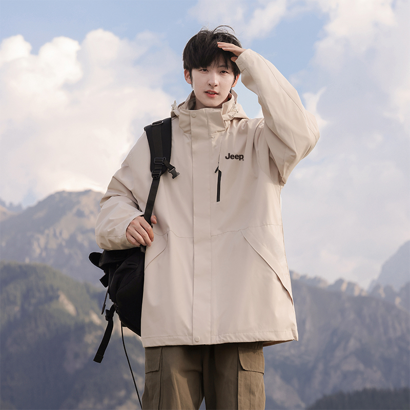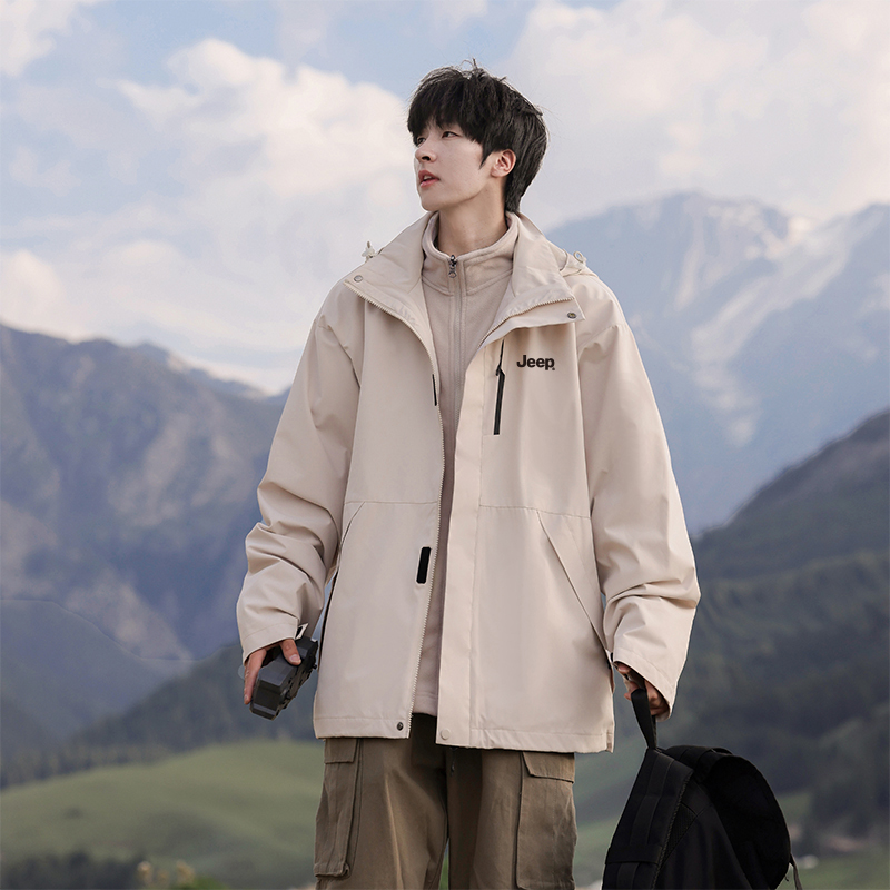 Куртка мужская Jeep, бежевая [3-в-1 с подкладкой из пуха серебристой лисы]