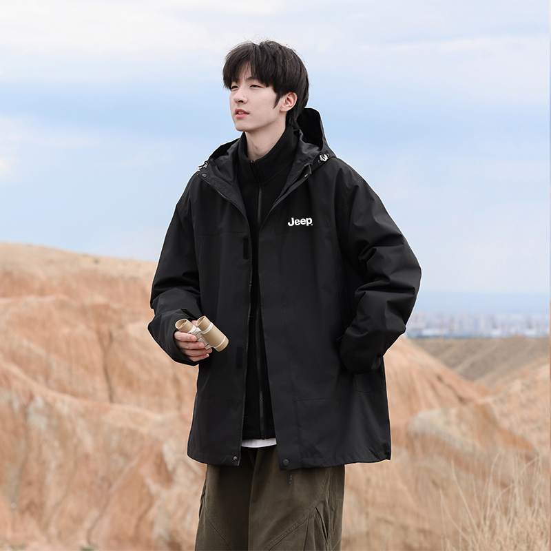 Куртка мужская Jeep, черная с бледно-зеленым [Однослойная куртка]