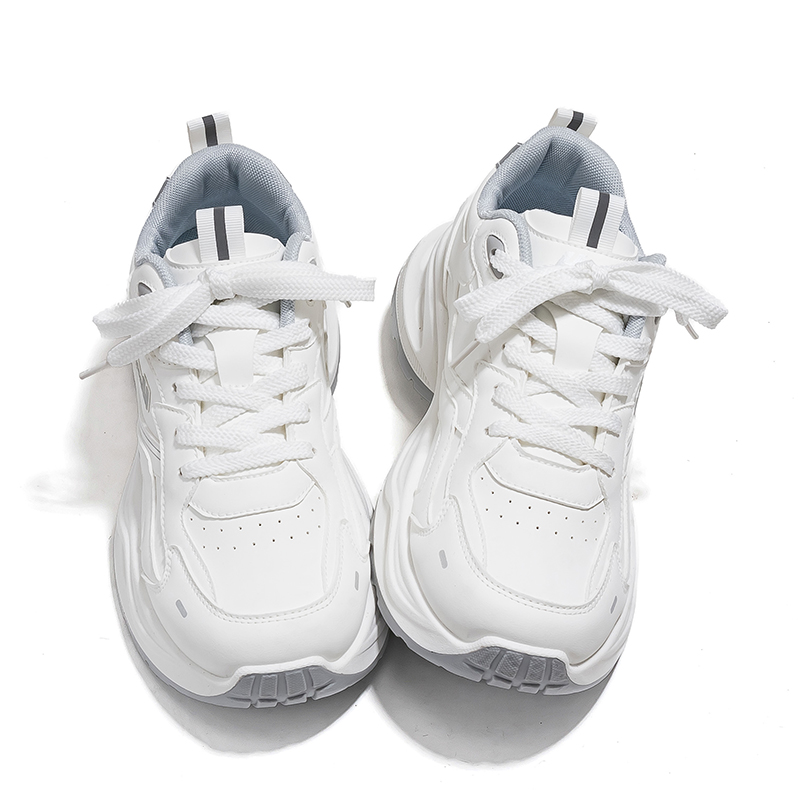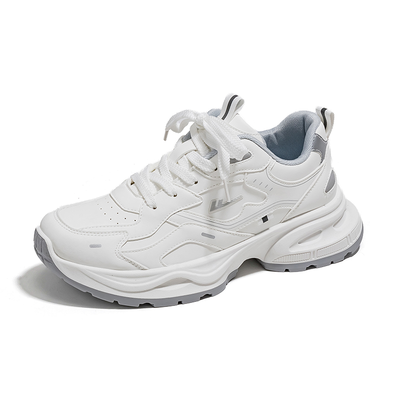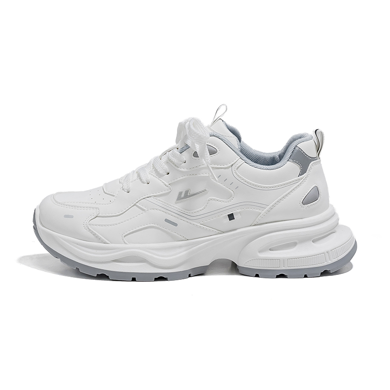 Warrior Low-Top Chunky Sneakers Unisex White Gray, Белые с серым кожаным верхом