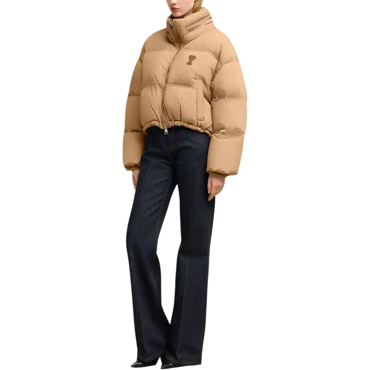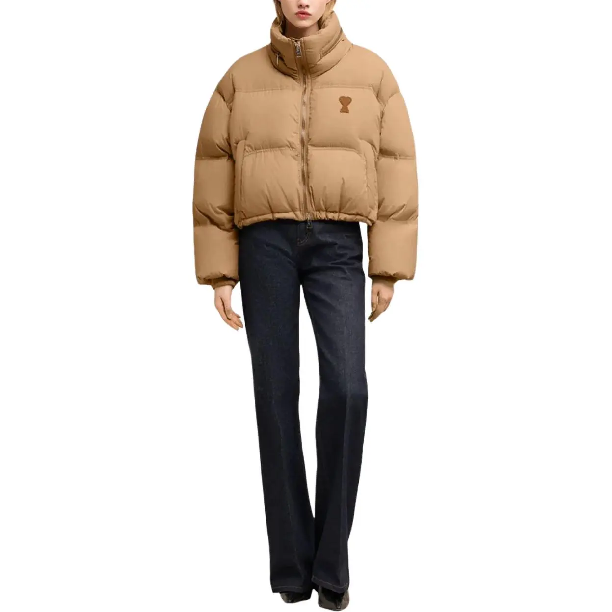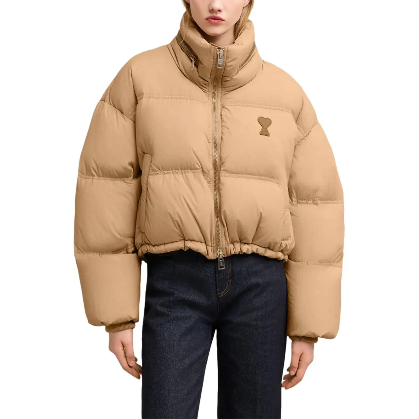 Куртка Ami Paris с логотипом и стеганым эффектом, песочный бежевый