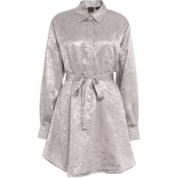 Поясное атласное мини-платье PINKO, серебристое