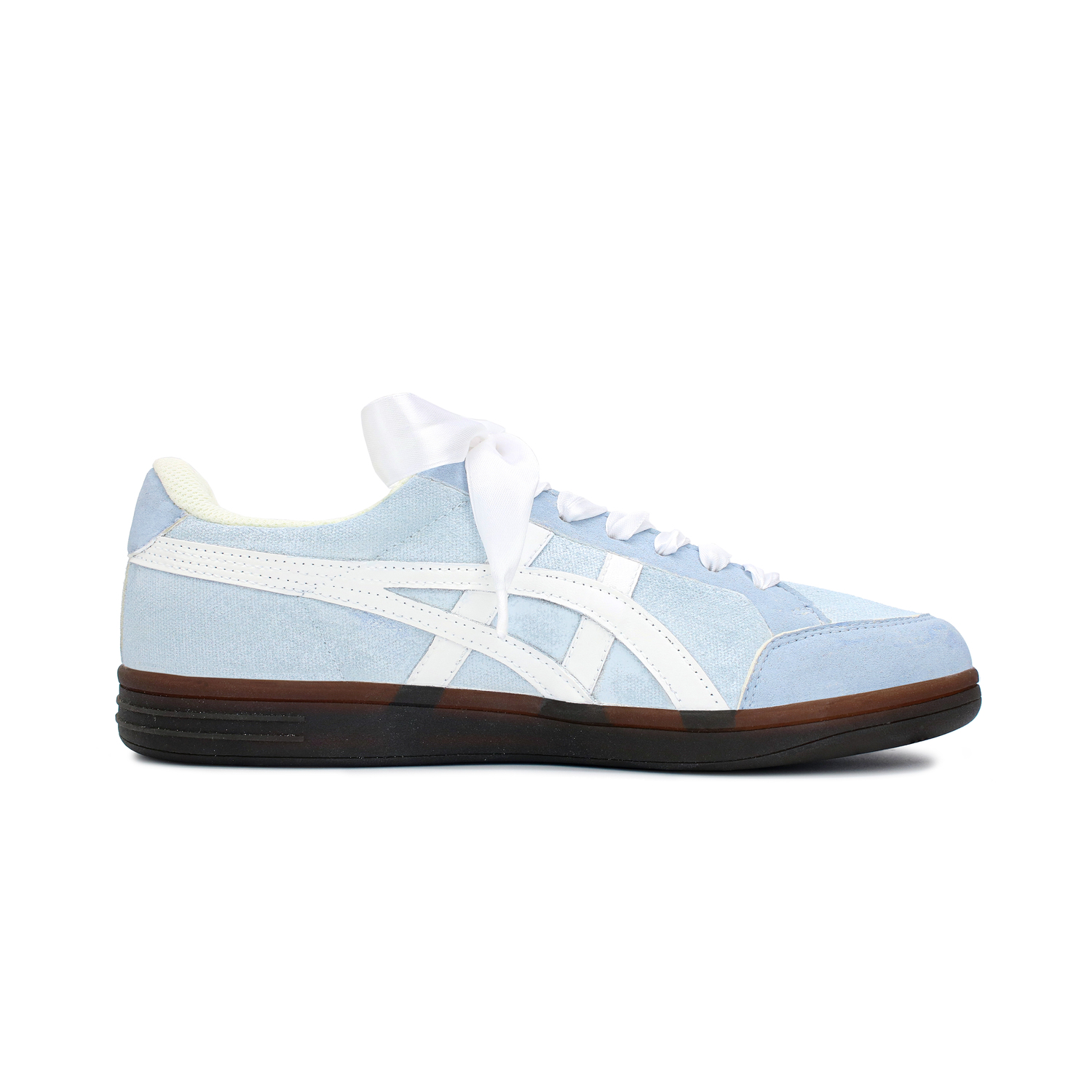Эта кастомизированная версия кроссовок создана на основе оригинальных низких кроссовок Onitsuka Tiger Advanti бежево-черного цвета. В дизайне использован чистый синий цвет в качестве основного, символизирующий бескрайнее небо и рябь синего моря. Белый используется в качестве вспомогательного цвета, олицетворяя белые облака и нежный песок, которые дополняют друг друга, передавая прекрасное настроение – желание пойти на пляж. Шнурки из текстурированных лент в форме бантов добавляют нотку романтики и элегантности. Эти кроссовки «Want to Go to the Beach» с уникальной сине-белой цветовой гаммой и атласным бантом сочетают в себе непринужденную атмосферу, свойственную пляжному отдыху, и модный стиль спортивной обуви, даря владельцу двойное визуальное и духовное наслаждение. Модель представлена в подарочной упаковке.