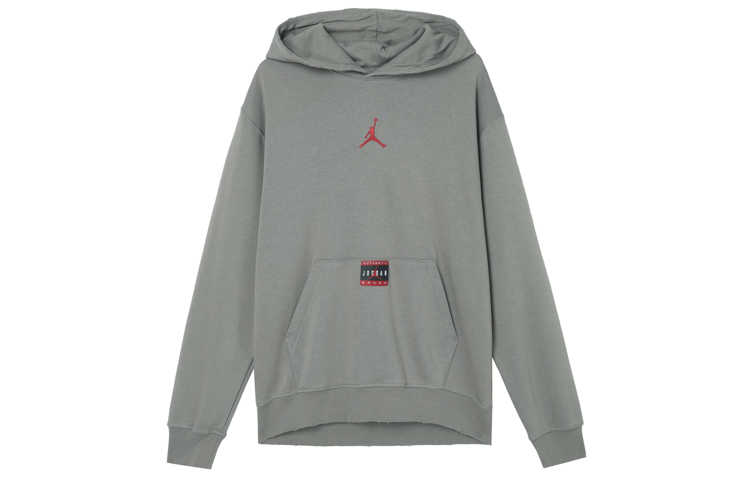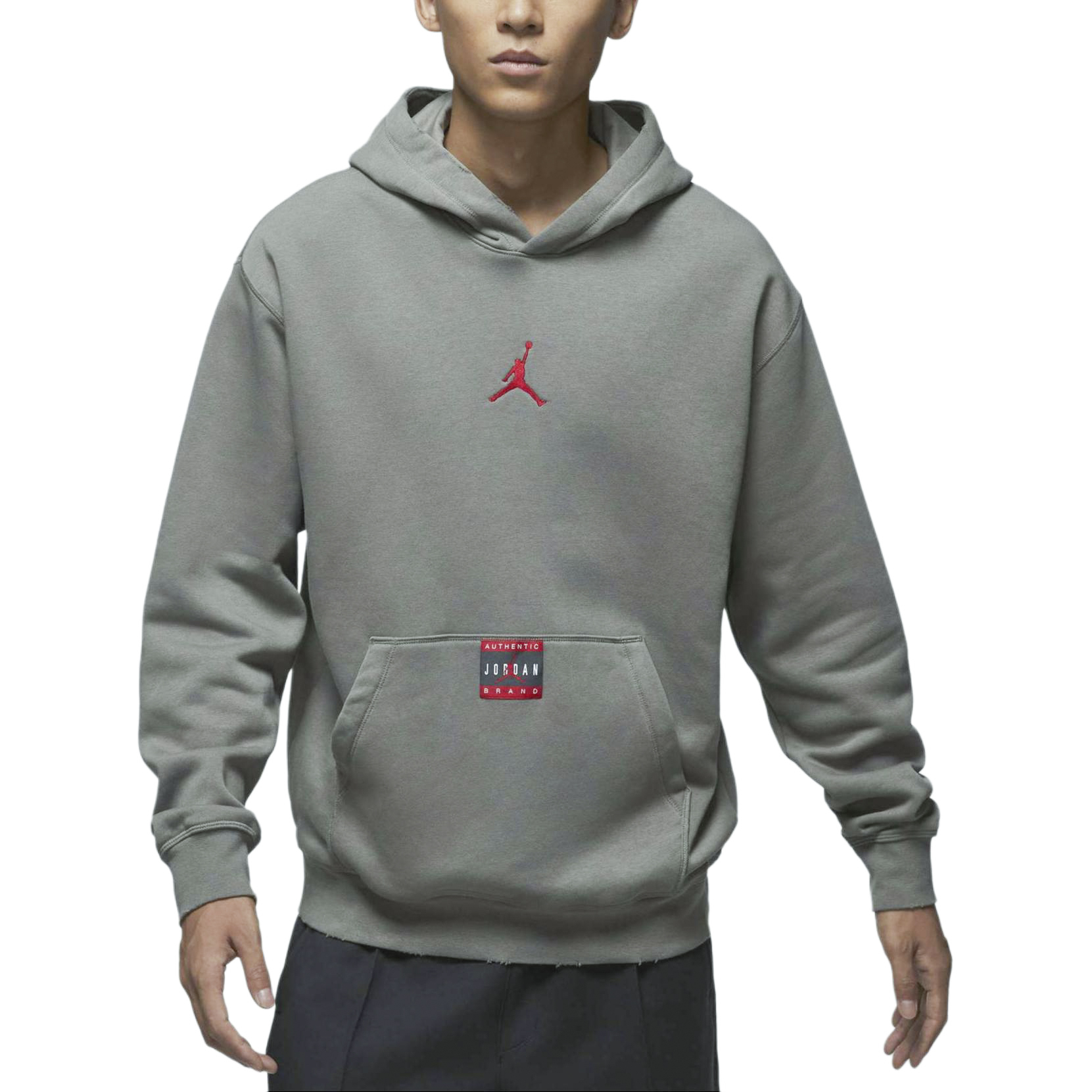Джордан Бруклин Флисовая Мужская Толстовка с Капюшоном, Асфальтово-Серый/Спортивный Красный