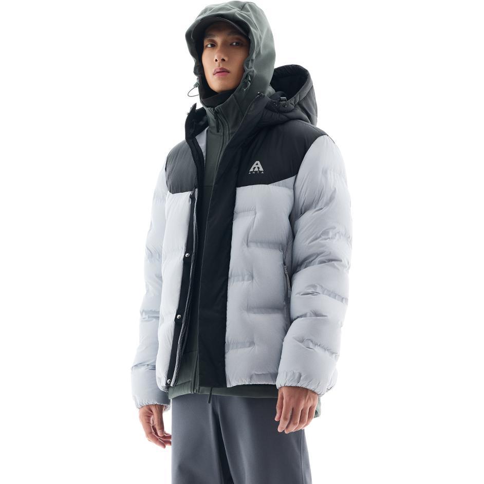 Куртка пуховая мужская Anta Outdoor Collection Пыльно-серый/Черный базовый, Известняковая грязь/Черный базовый