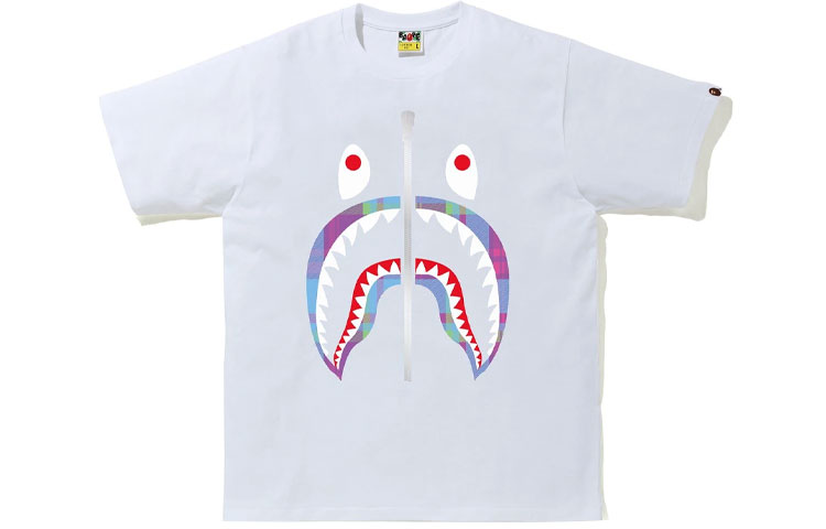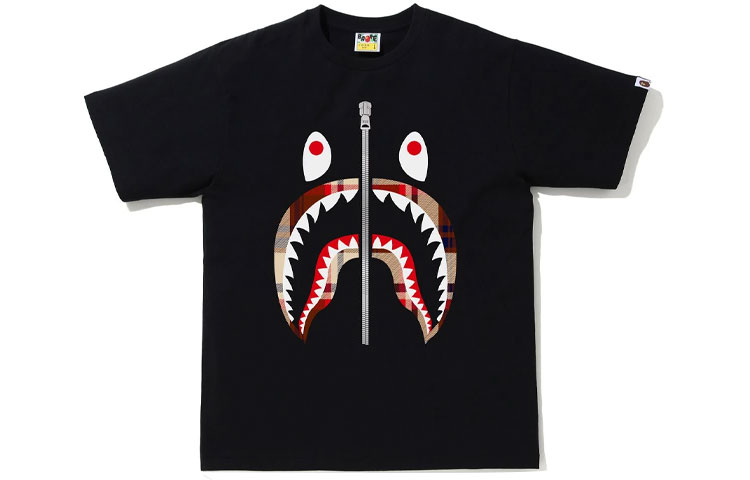 Футболка Bape Check Shark A BATHING APE, черно-фиолетовая