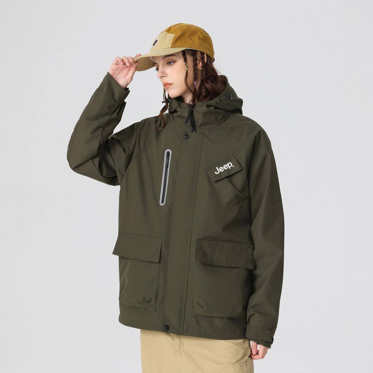 Тренчкот Unisex Jeep, Темно-армейский Однобортный Пальто