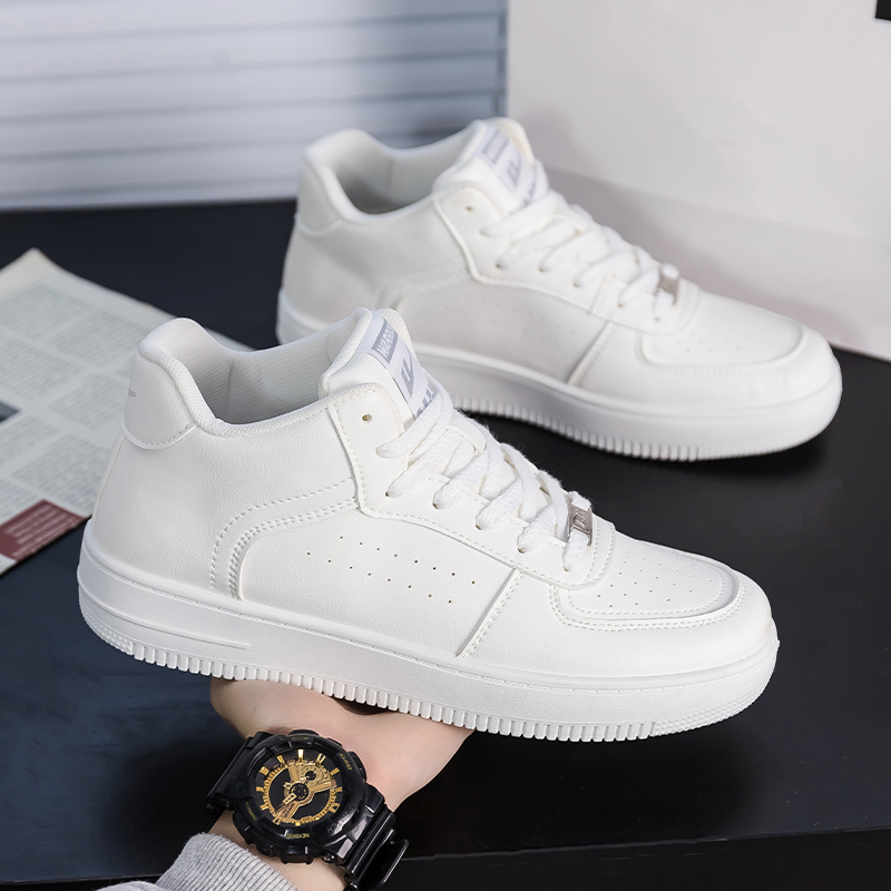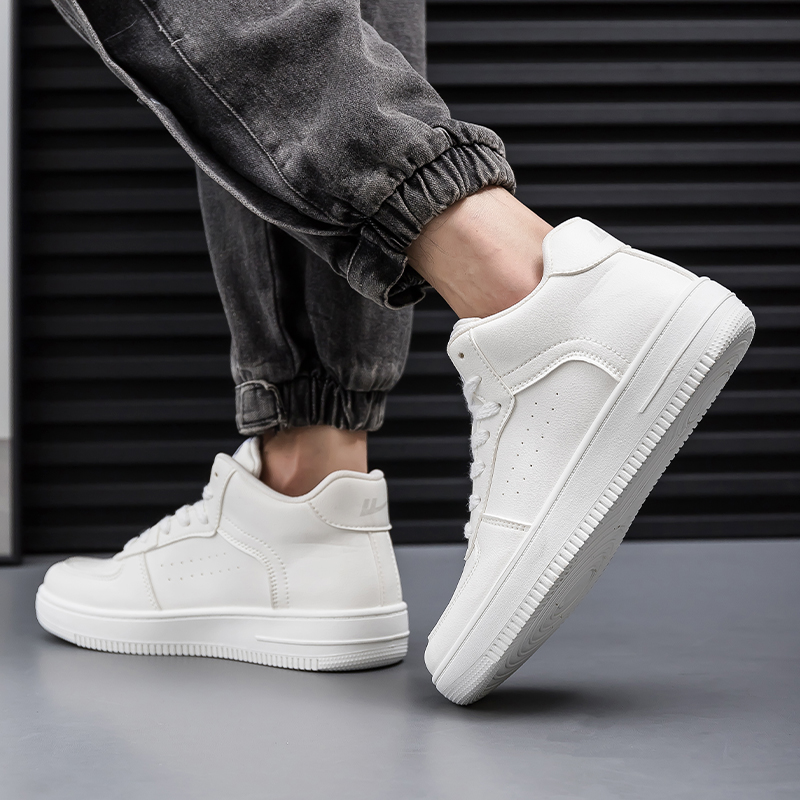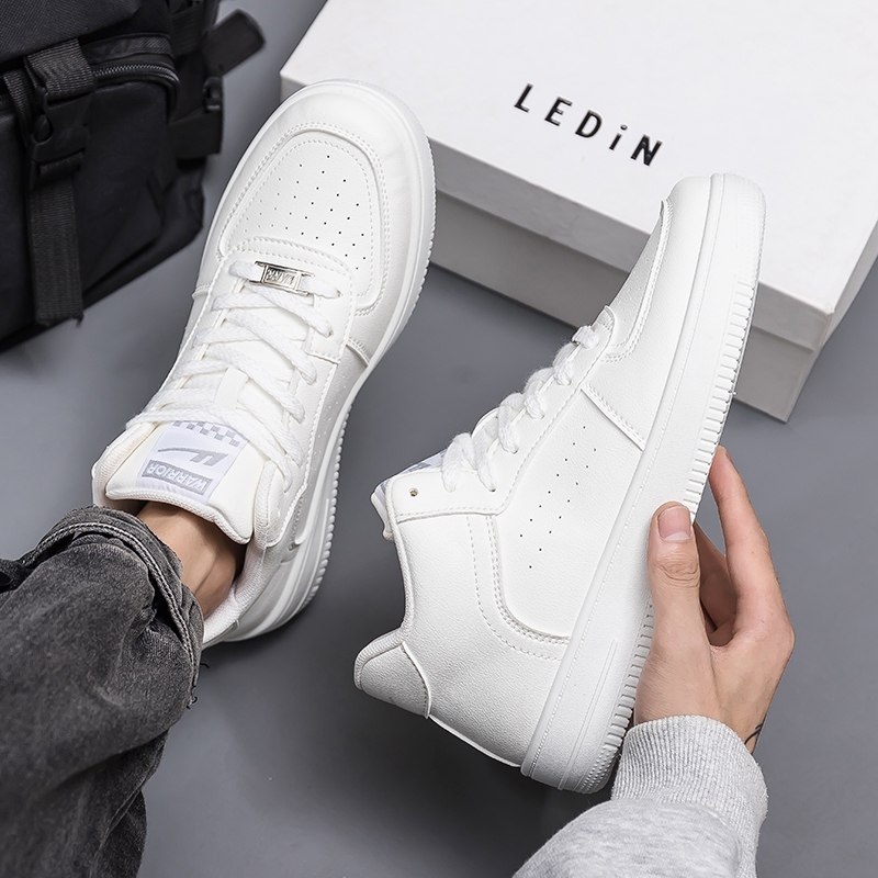 Скользоустойчивые дышащие увеличивающие рост полувысокие скейтерские кеды Warrior мужские белые