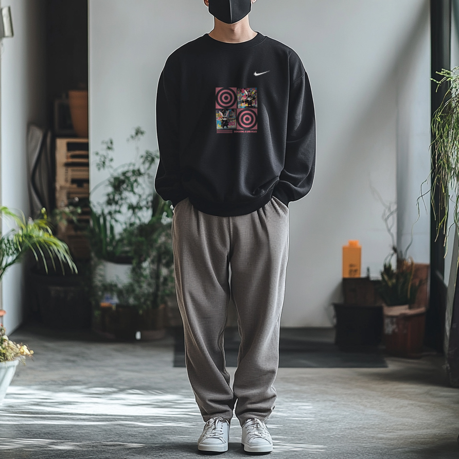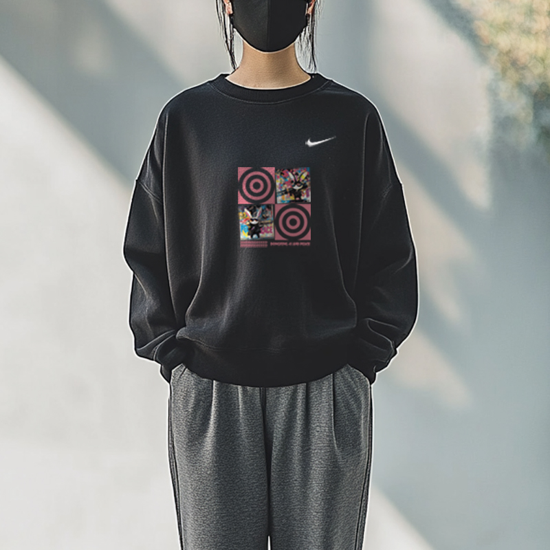 Эта модель, изготовленная на заказ, представляет собой оригинальную чёрную толстовку с круглым вырезом и длинными рукавами, украшенную логотипом Nike. Этот оригинальный дизайн — первый в своём роде, с принтом высокой чёткости, что минимизирует вероятность того, что вы наденете такую же вещь, как и другие.