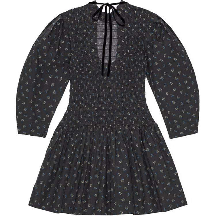 Футболка с цветочным принтом и рюшами GANNI, Phantom Black