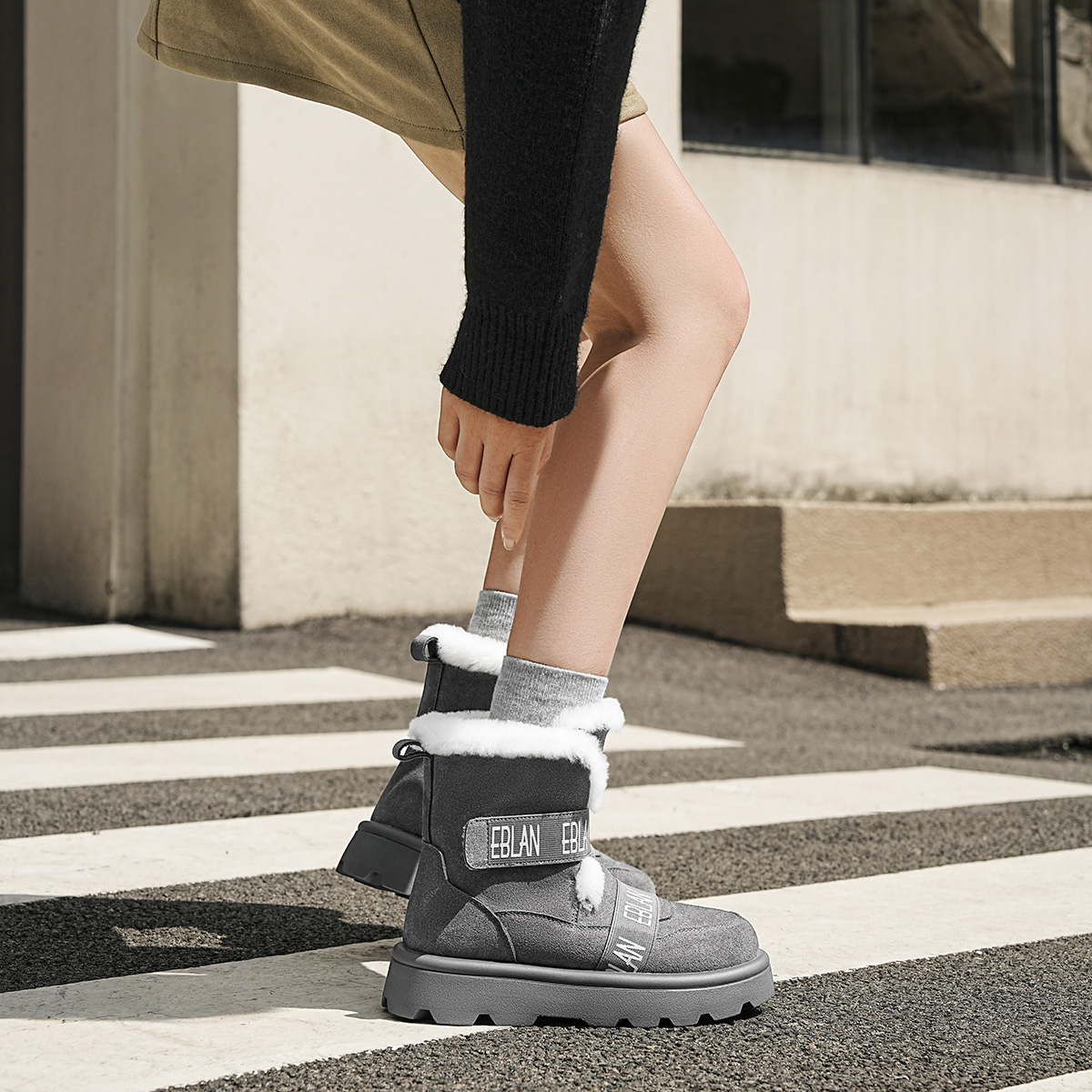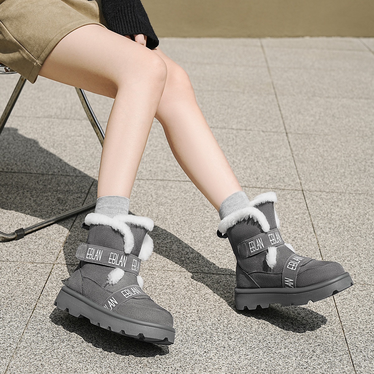 Зимние сапоги женские EBLAN, серые (с флисовой подкладкой)