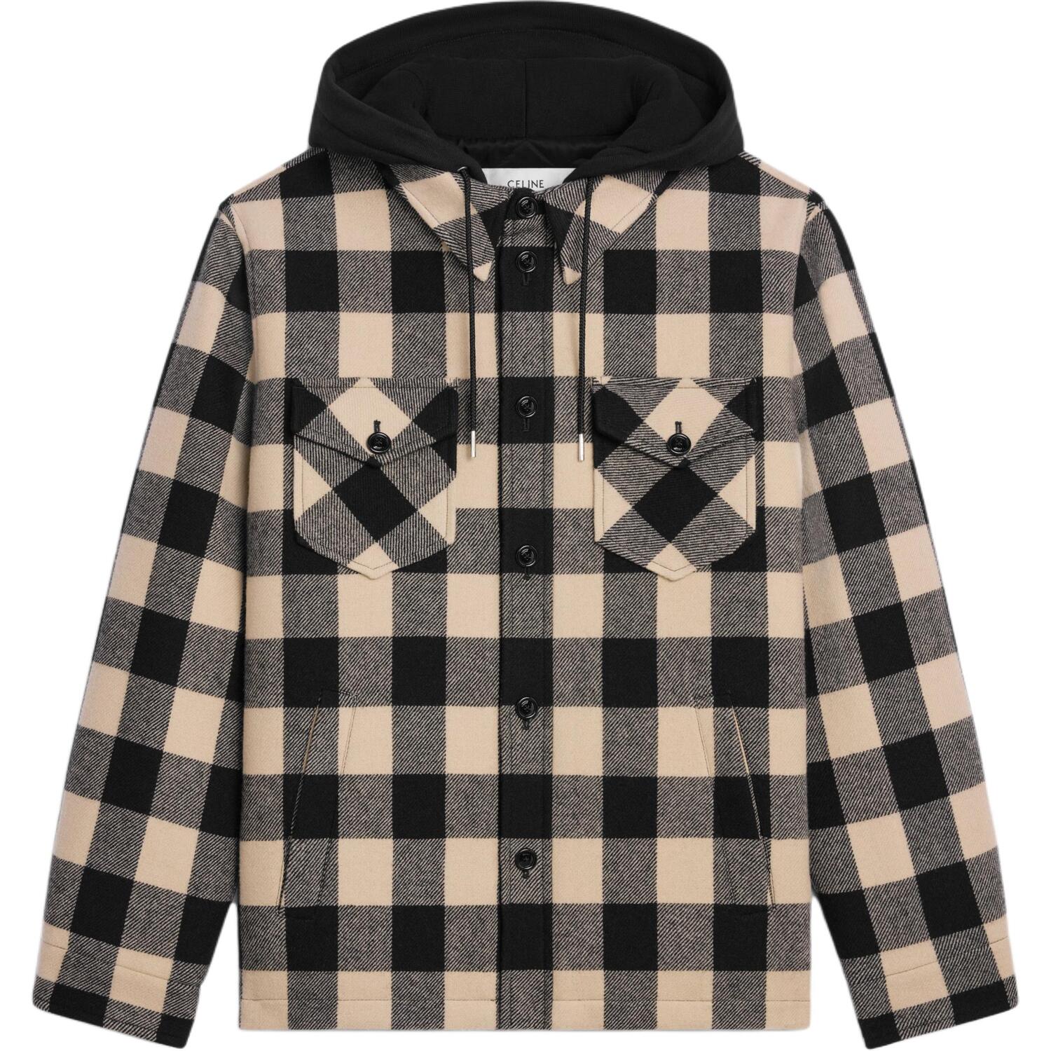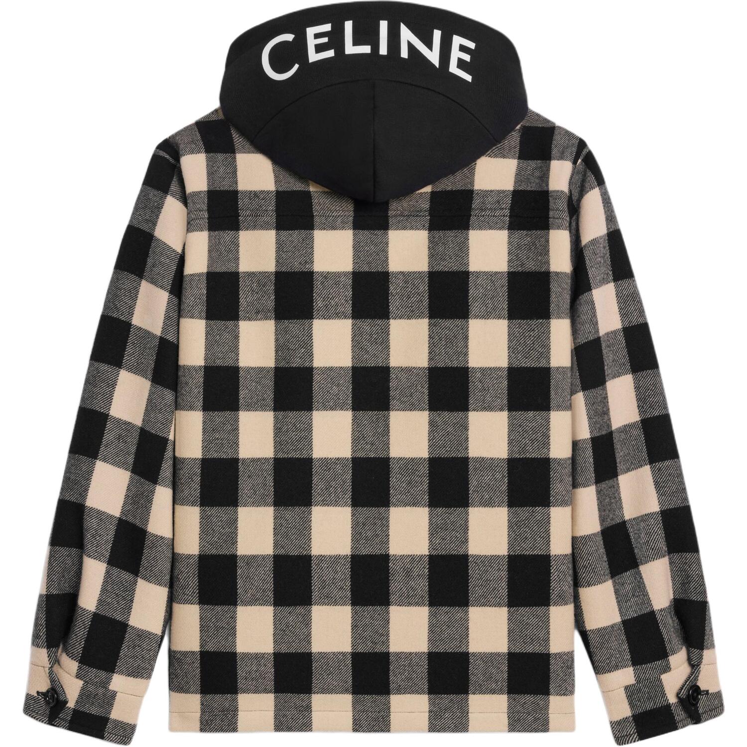 Клетчатая шерстяная худи-рубашка CELINE, светло-умбра