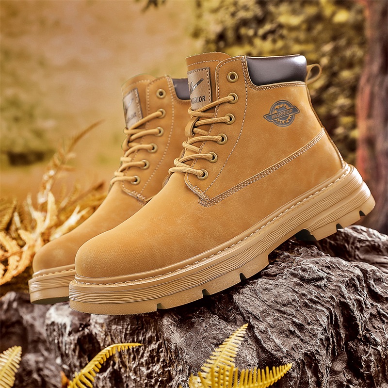 Классические желтые ботинки Warrior Короткие ботинки мартин Мужские, Полностью черные